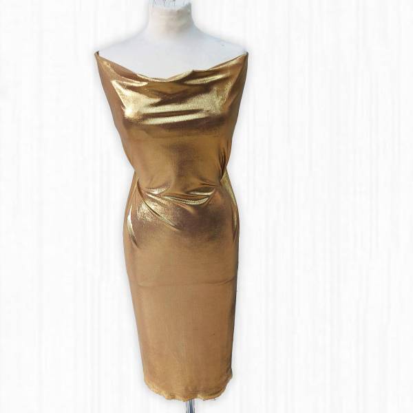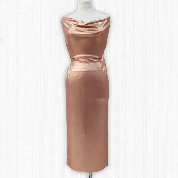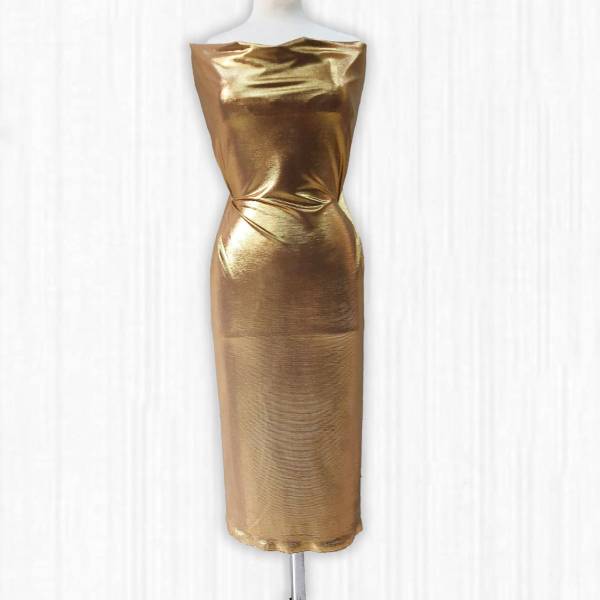 Tessuto di maglina bielastica lurex color ramato/argento/oro