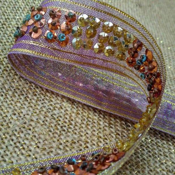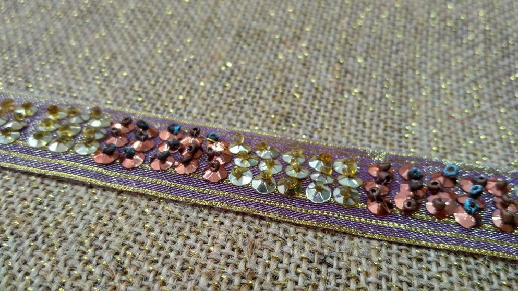 Nastro in stile Art Decò con decorazioni paillettes oro e rame – bronzo