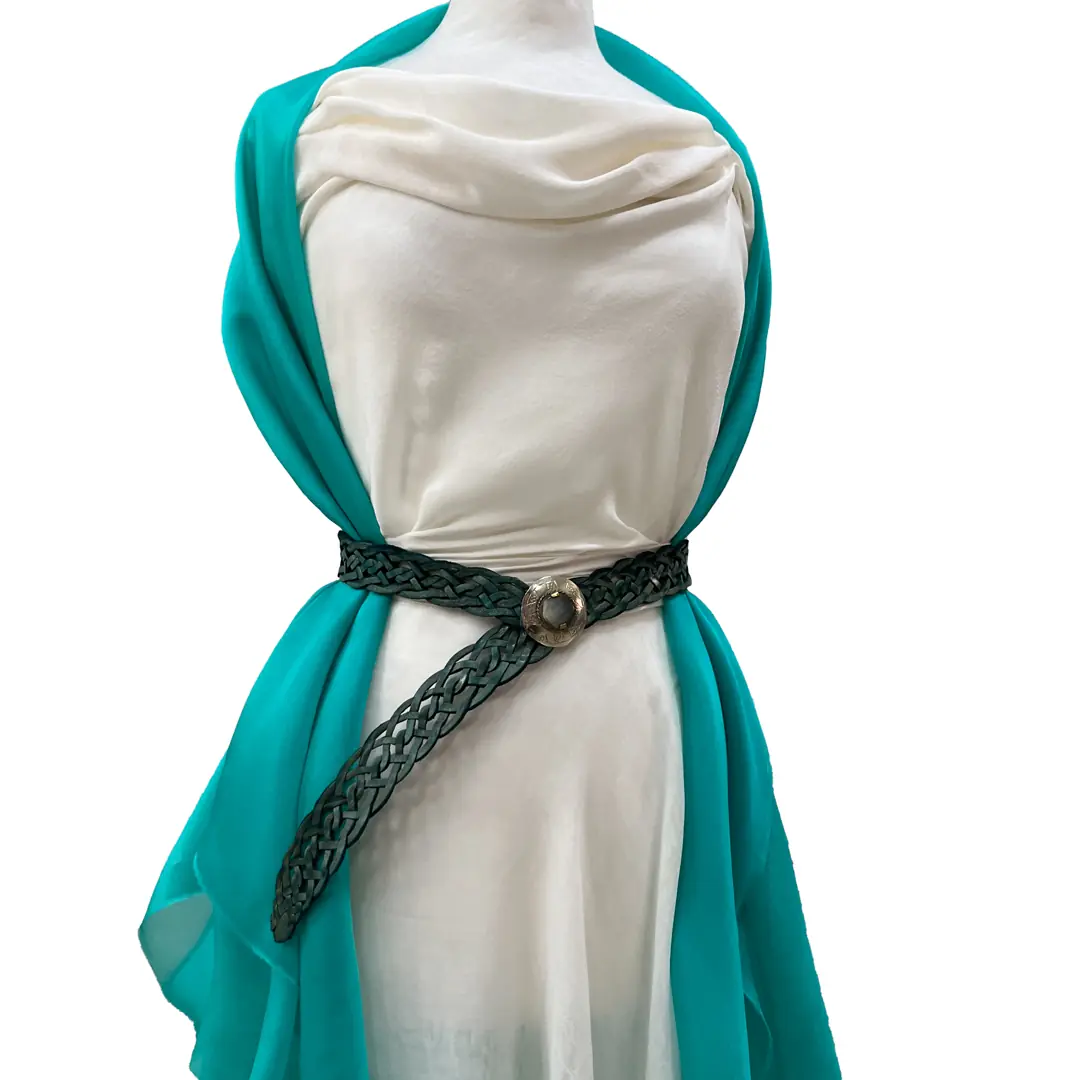 Il colore verde acqua, luminoso e raffinato, esalta la brillantezza tipica della seta pura, riflettendo la luce in modo cangiante e creando effetti dinamici e sofisticati.
