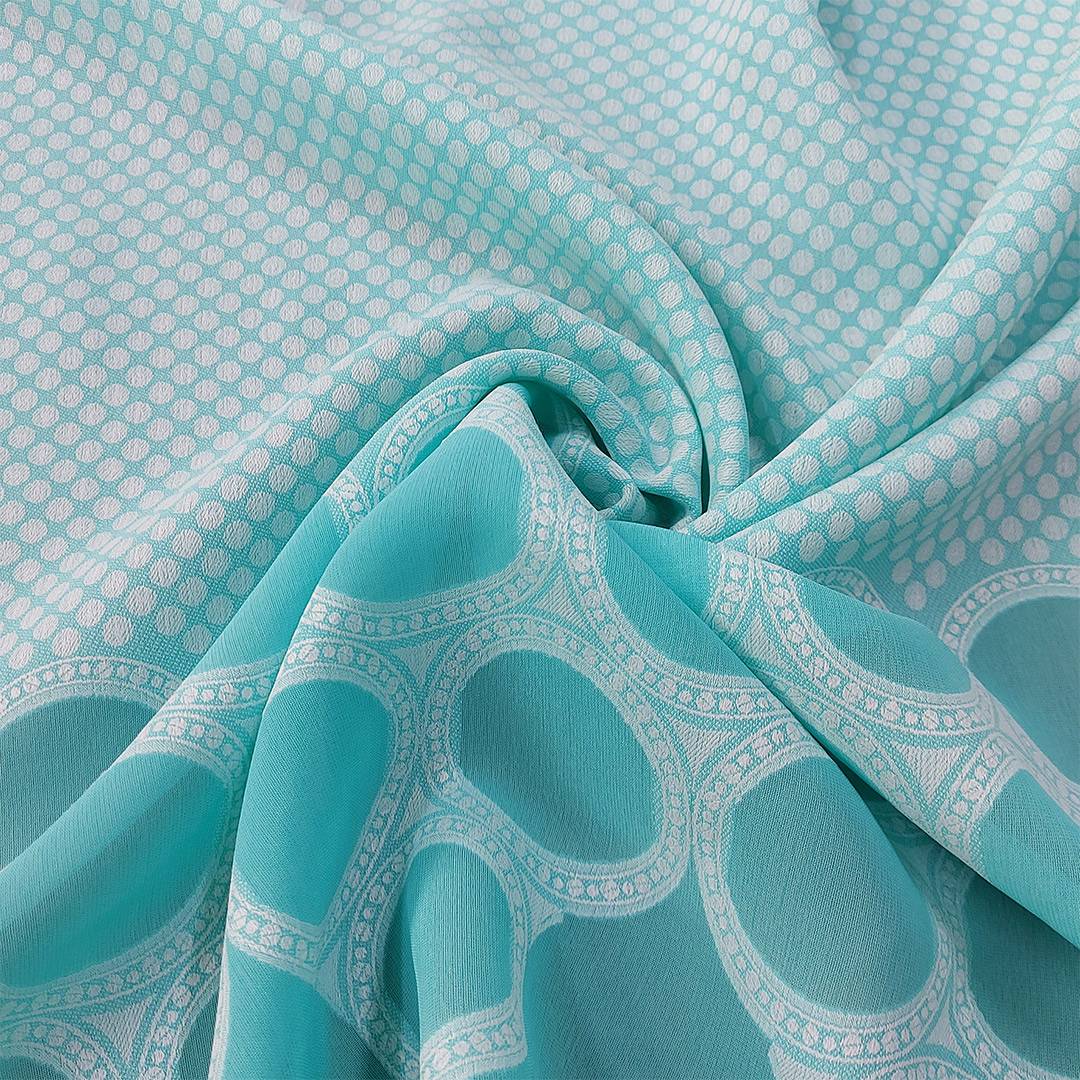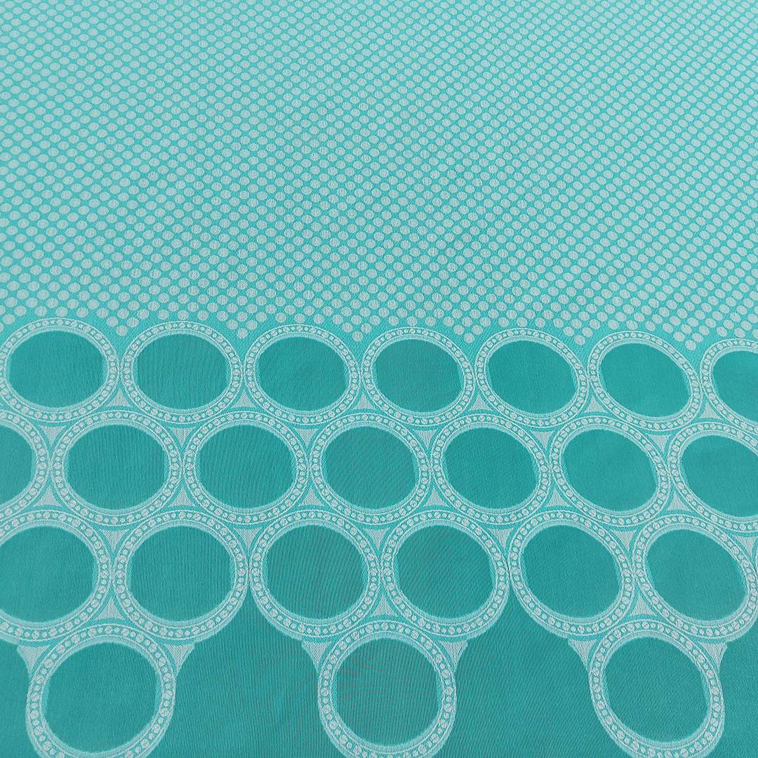 Leggerissimo pannello in misto cotone di colore verde acquamarina decorato con divertenti forme geometriche. Adatto per qualsiasi capo d’abbigliamento