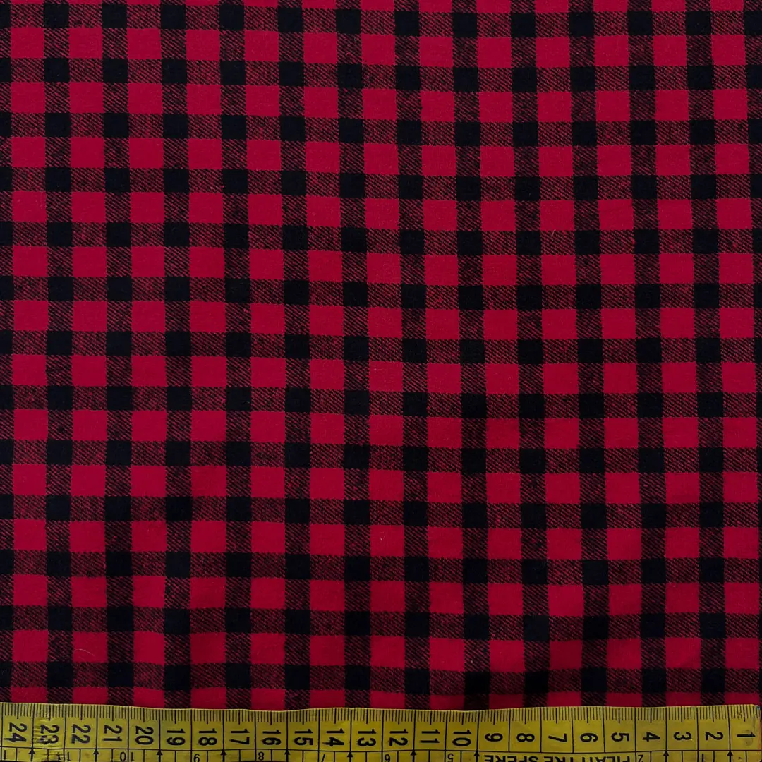 Tessuto in Panno di Pura Lana a Quadri Scozzesi Rosso e Nero