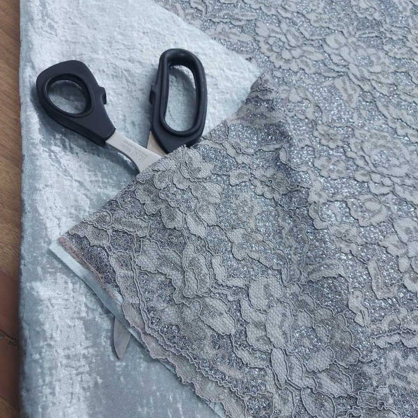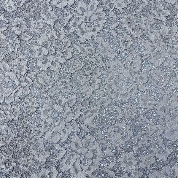 Grazie alla combinazione tra il pizzo e la base glitterata, questo tessuto offre un equilibrio tra eleganza classica e modernità scintillante, rendendolo una scelta ideale per chi desidera un look raffinato e distintivo.