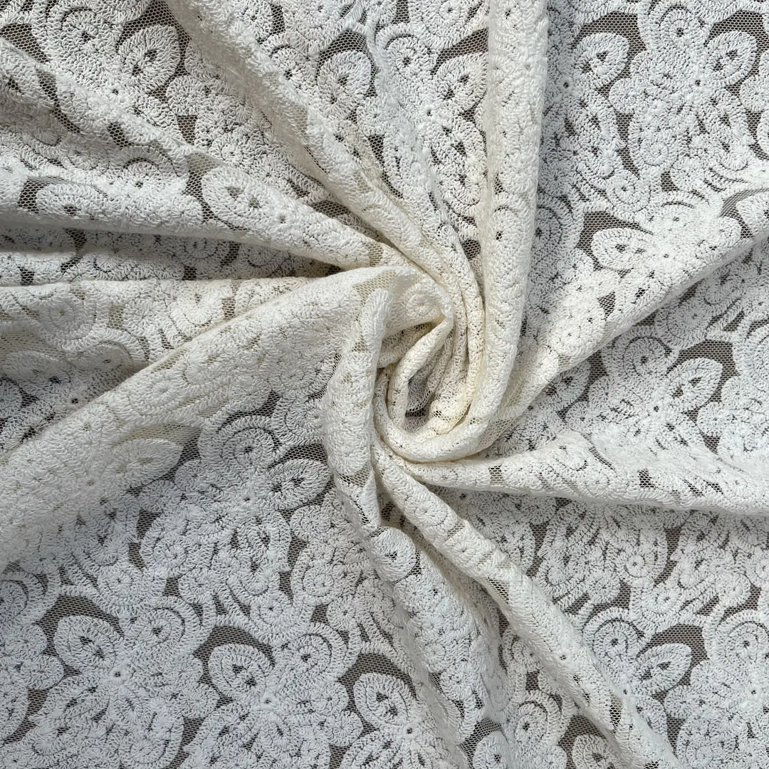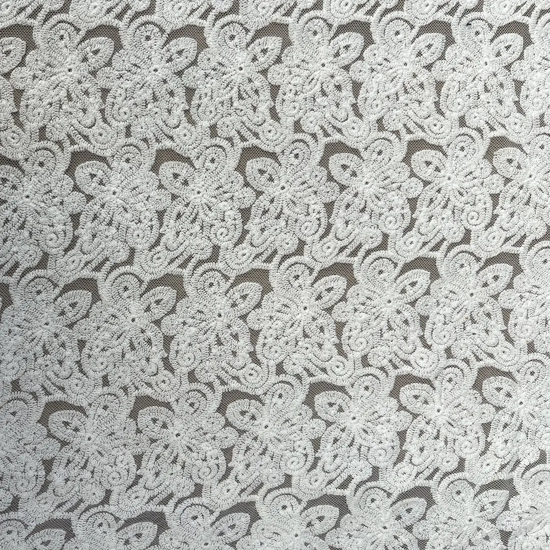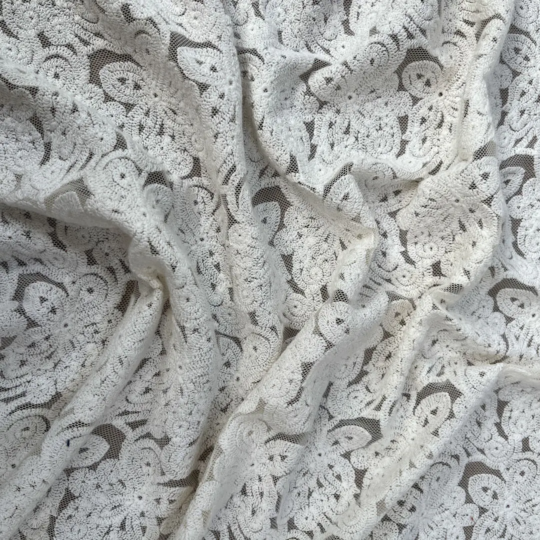Questo pizzo rappresenta un capolavoro di artigianato tessile, realizzato con un ricamo finissimo in puro cotone al 100% che dona una texture delicata e naturale, supportato da una base di tulle in poliestere al 100% per garantire leggerezza e trasparenza senza compromessi sulla struttura.