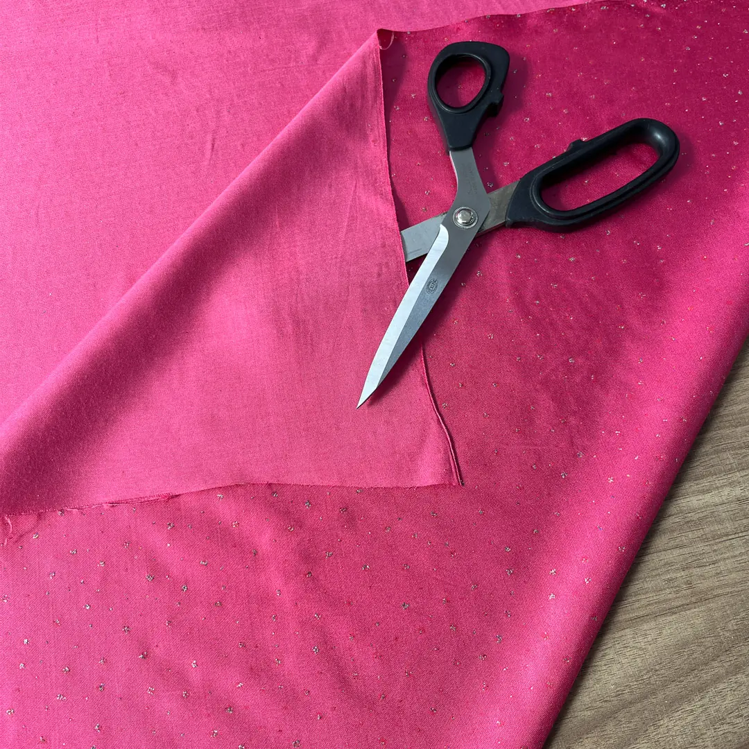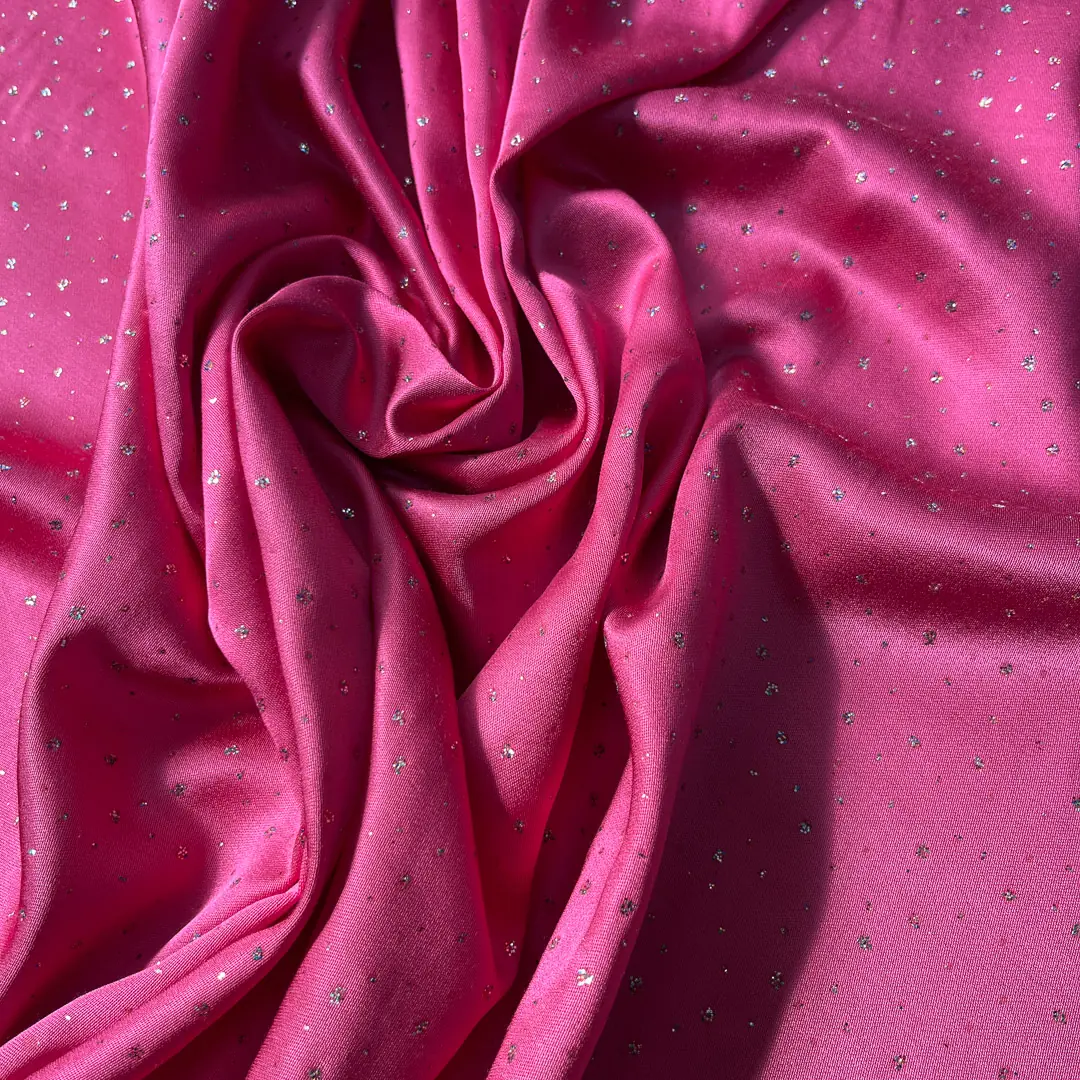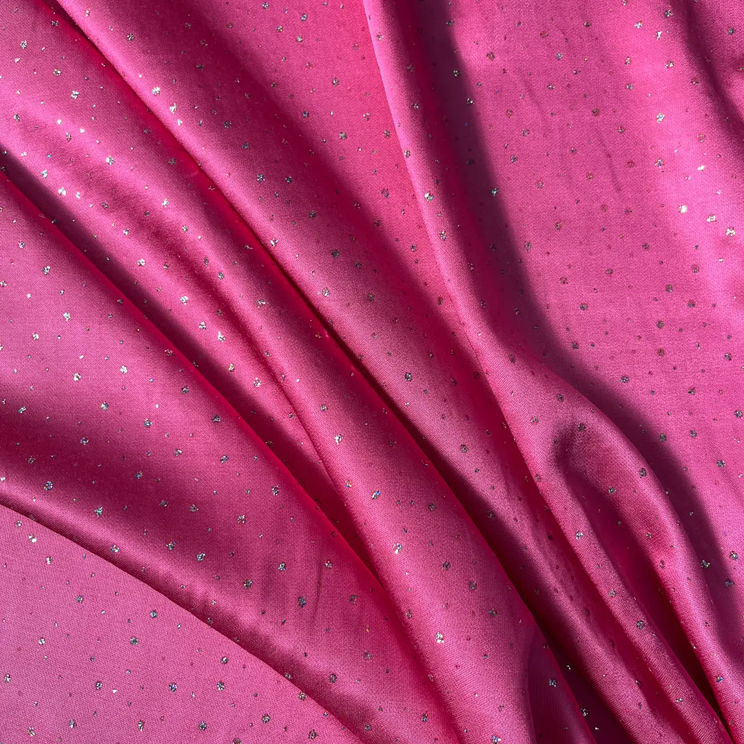 Raso in cotone mercerizzato rosa ciclamino con glitter applicati