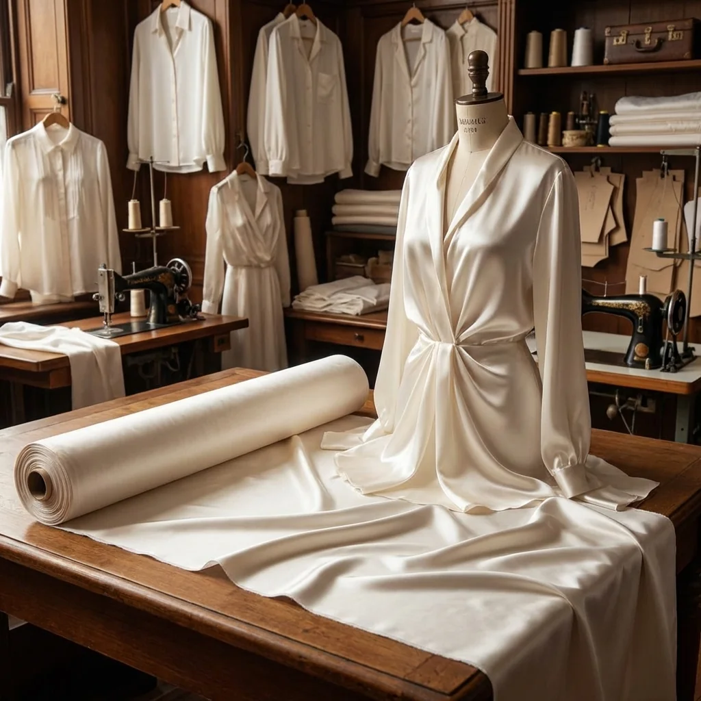Il raso di pura seta bianco naturale rappresenta una scelta di prim’ordine per realizzazioni sartoriali di alto livello, dall’abbigliamento da cerimonia agli accessori moda più raffinati.