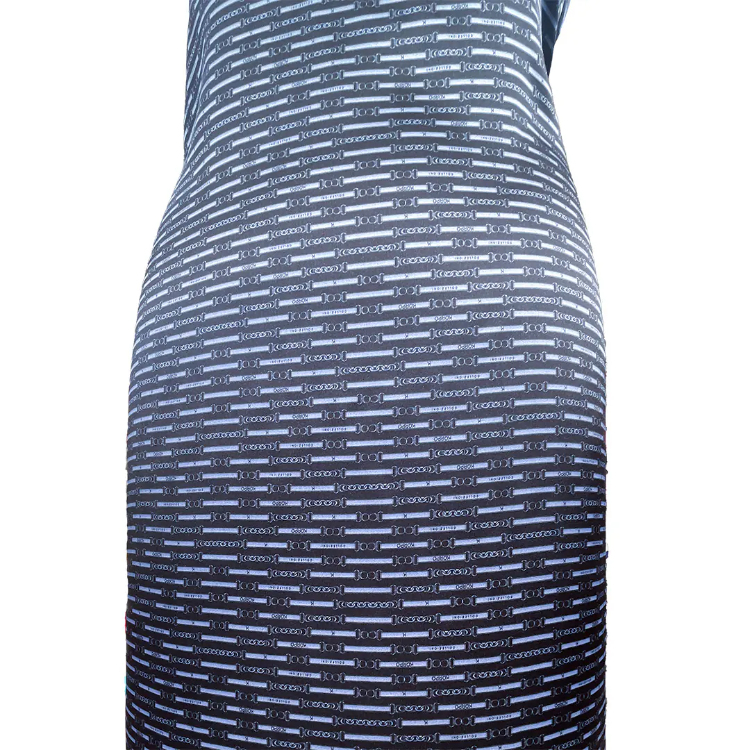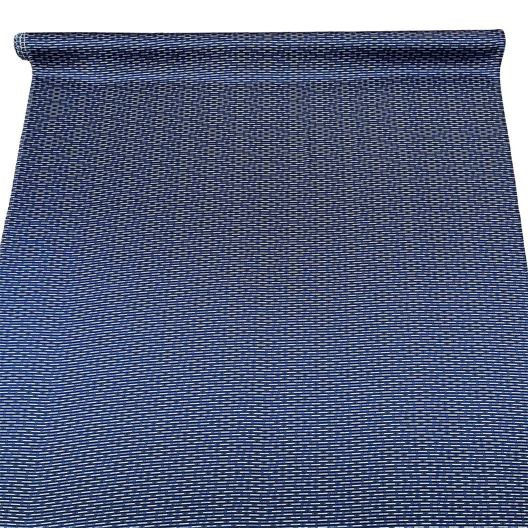 Ricco di vari contrasti a motivi geometrici su sfumature del blu, azzurro, blu notte, dalla sensazione morbidissima al tatto e dalla eccellente vestibilità.