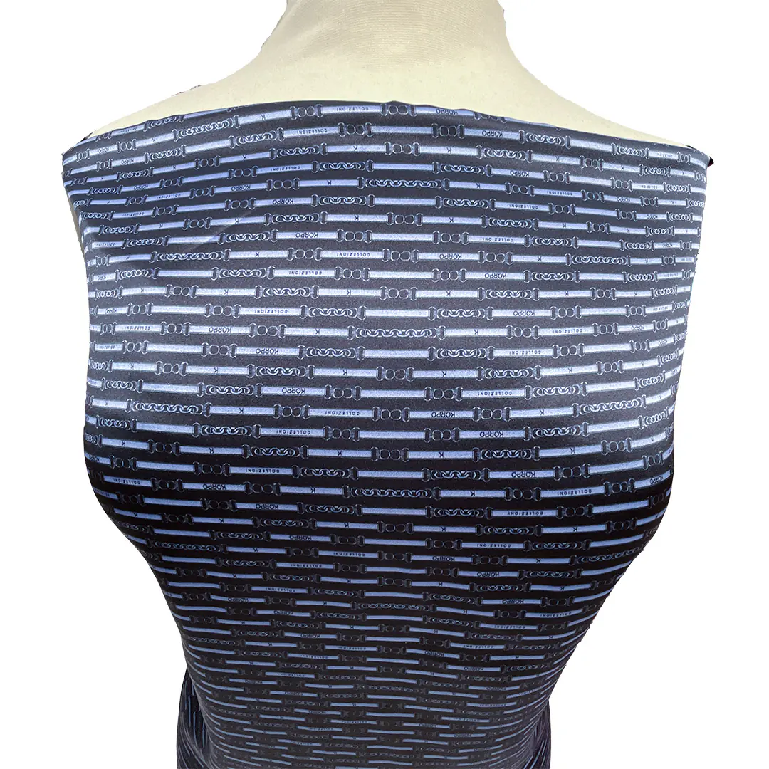 È una seta molto morbida che procura una piacevole sensazione al tatto, ha una elevata vestibilità e la stampa che lo caratterizza crea movimento alla figura che lo indossa.