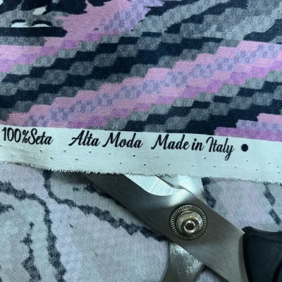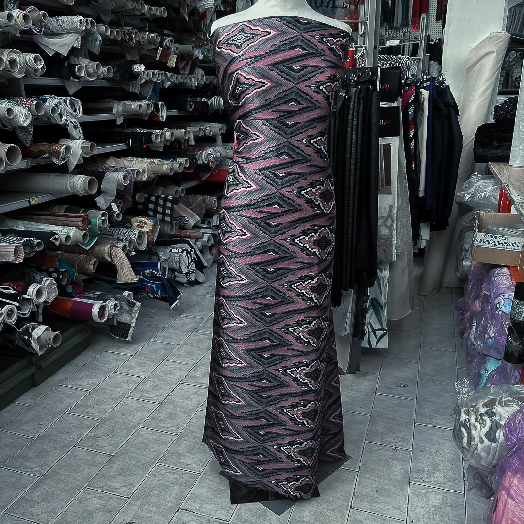 Tessuto in raso di seta alta moda Made in Italy fantasia geometrica a rombi