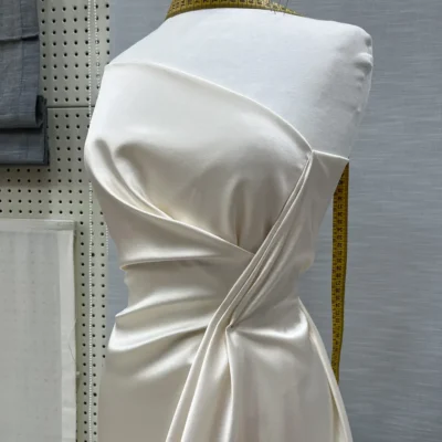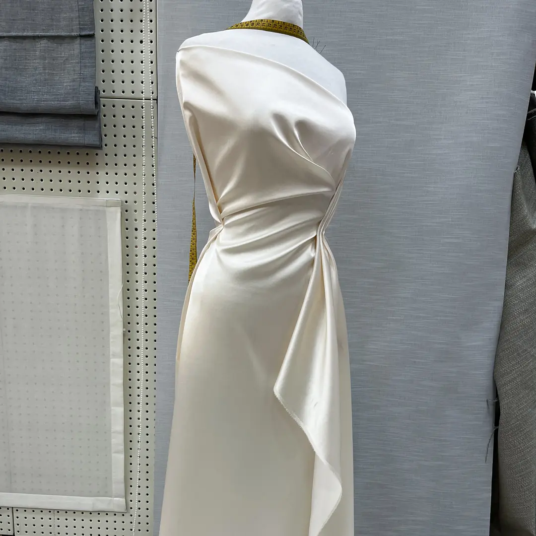 È inoltre perfetto per gonne voluminose, grazie alla sua capacità di mantenere la forma. Anche giacche e blazer eleganti trovano in questo tessuto un ottimo alleato, poiché la sua leggera rigidità conferisce una vestibilità sartoriale. Per camicie e bluse raffinate, la setosità e brillantezza del raso donano un tocco di classe. Infine è ideale per accessori e dettagli sartoriali, come fiocchi, colli particolari e inserti strutturati che richiedono un tessuto con un po’ di sostegno.