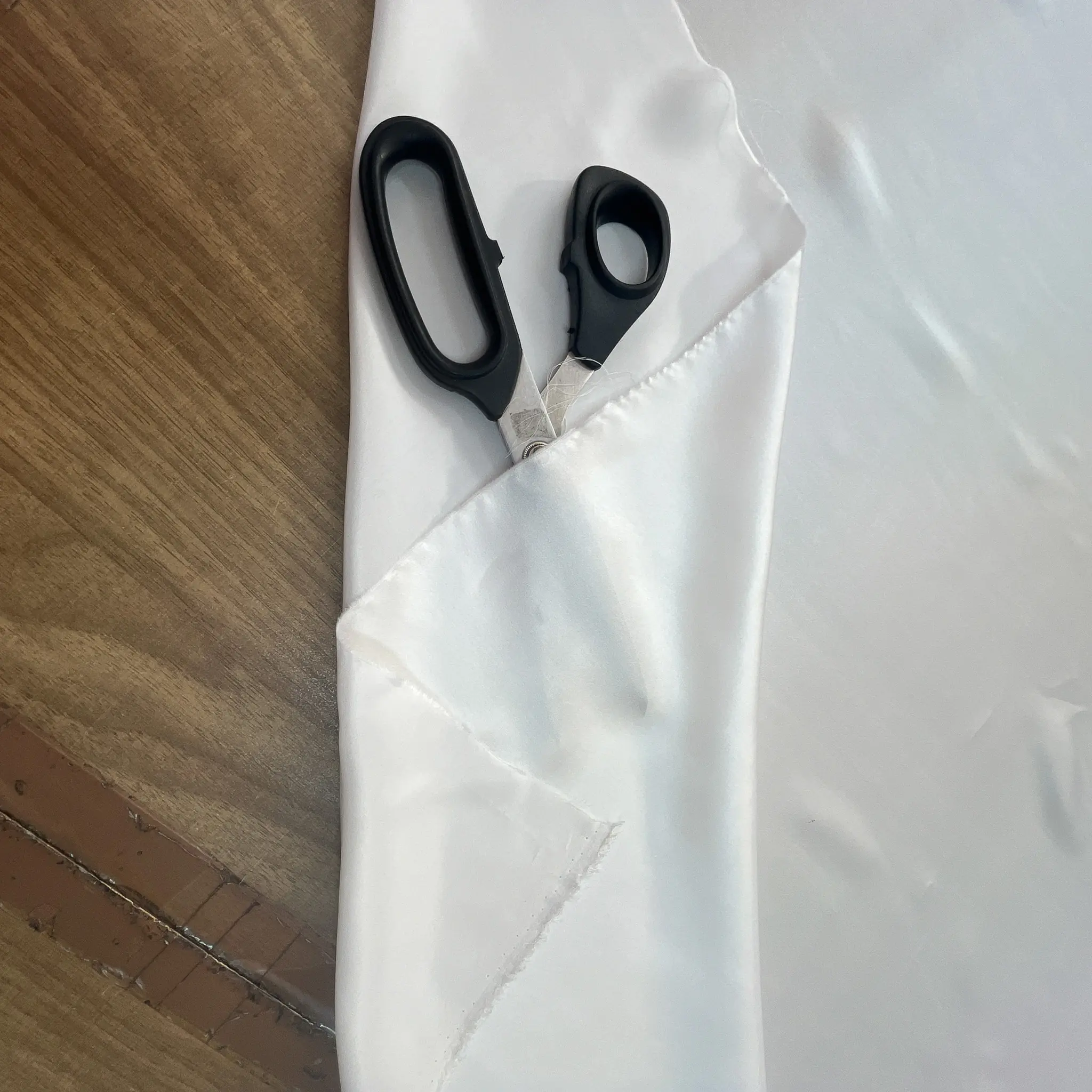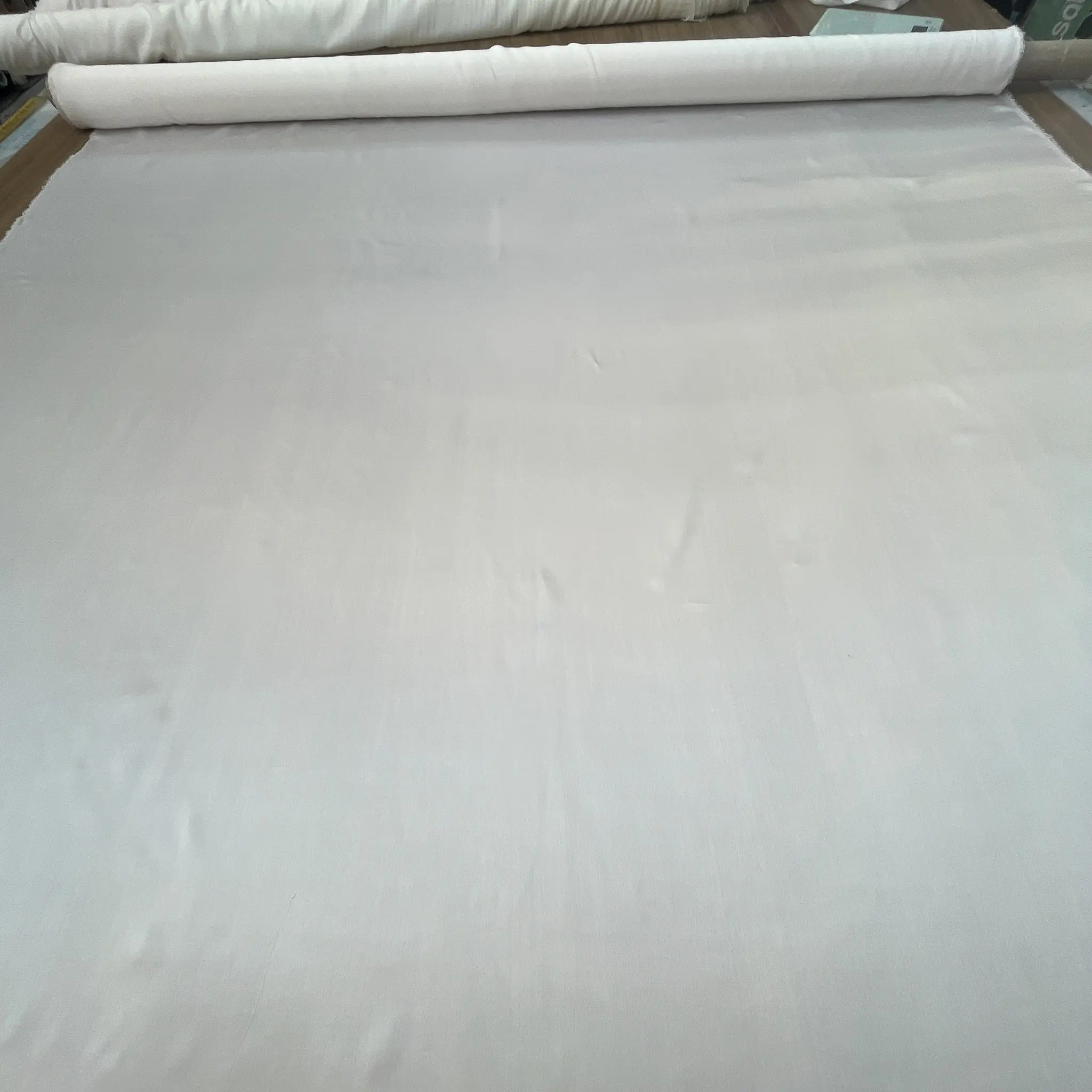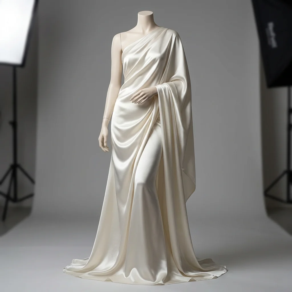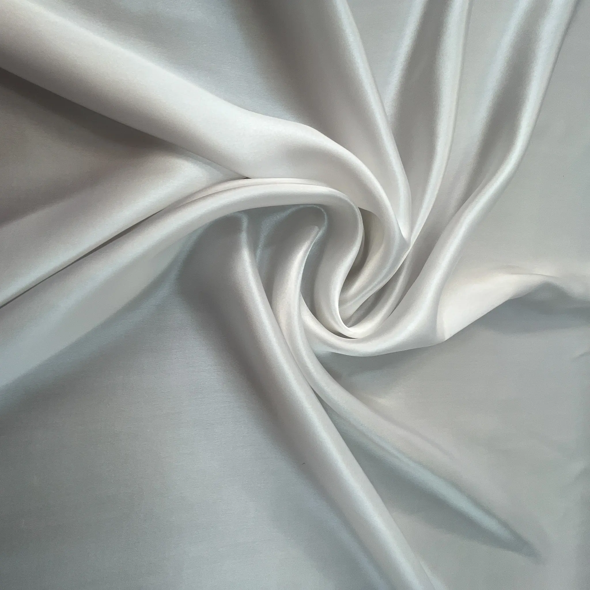 E un raso di seta elasticizzato Made in Italy di altissima qualità, proposto in un elegante bianco luminoso con una leggerissima sfumatura calda che lo rende morbido e sofisticato alla vista.