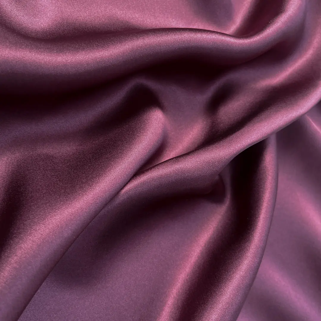 Tessuto in raso di pura seta italiana color viola melanzana