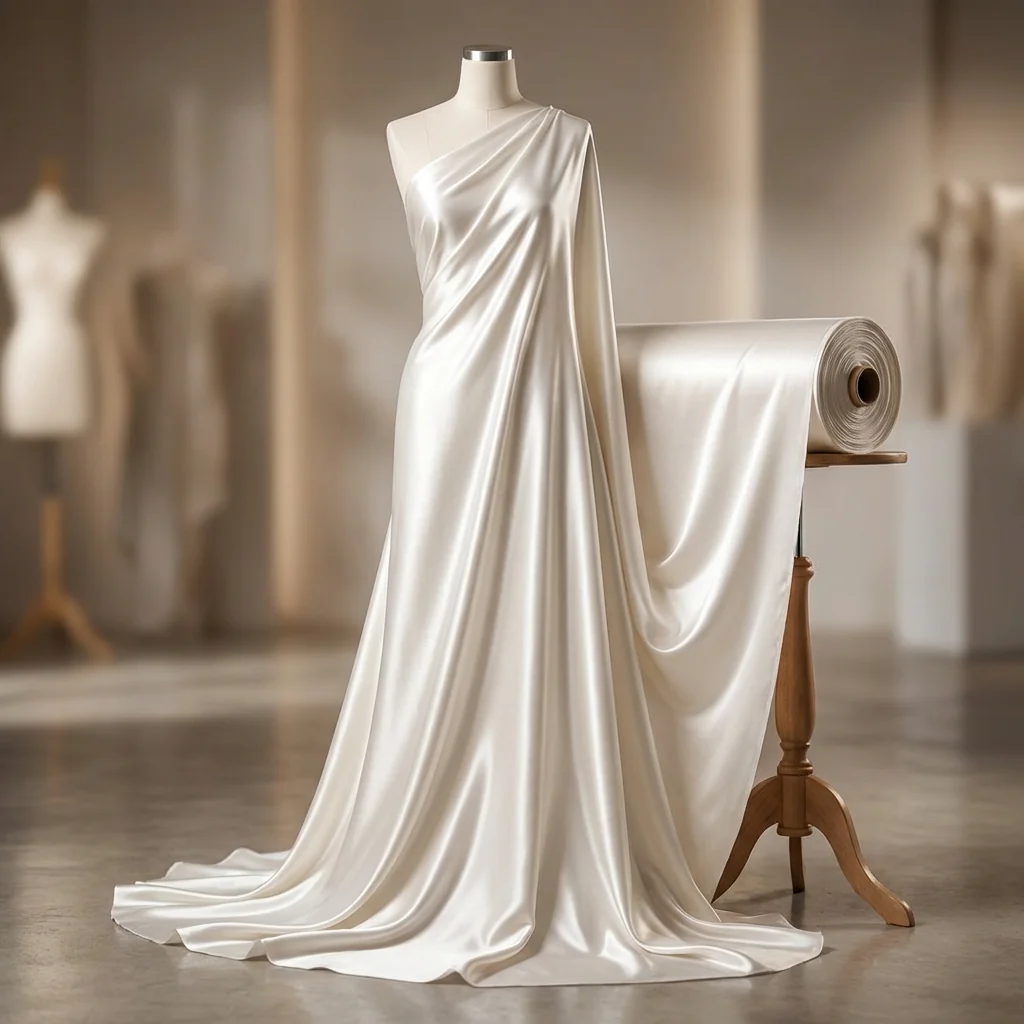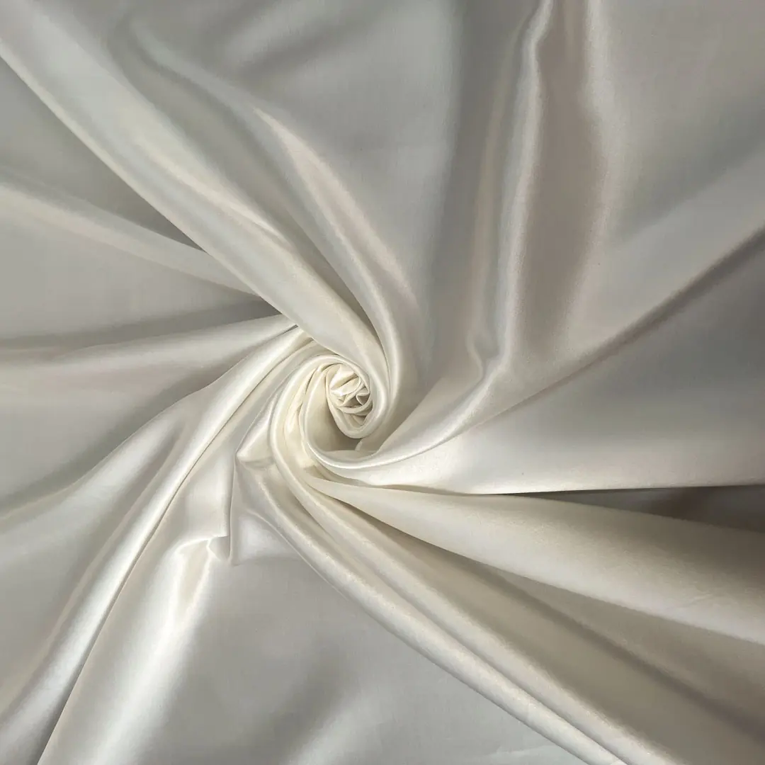 Tessuto d’abbigliamento in raso di seta Made in Italy bianco avorio