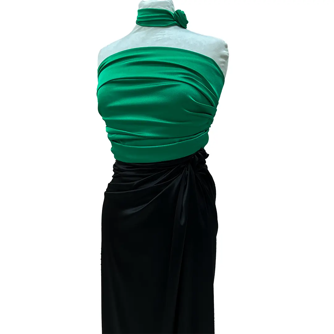 Dal punto di vista tecnico, il raso di poliestere garantisce una caduta fluida e armoniosa, perfetta per abiti eleganti e capi di alta moda.