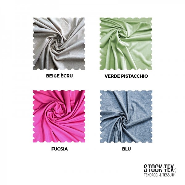 Tessuto di maglina in 100% cotone caratterizzato da una struttura a maglia sottile e traspirante, con un’altezza che varia tra 140 e 160 cm.