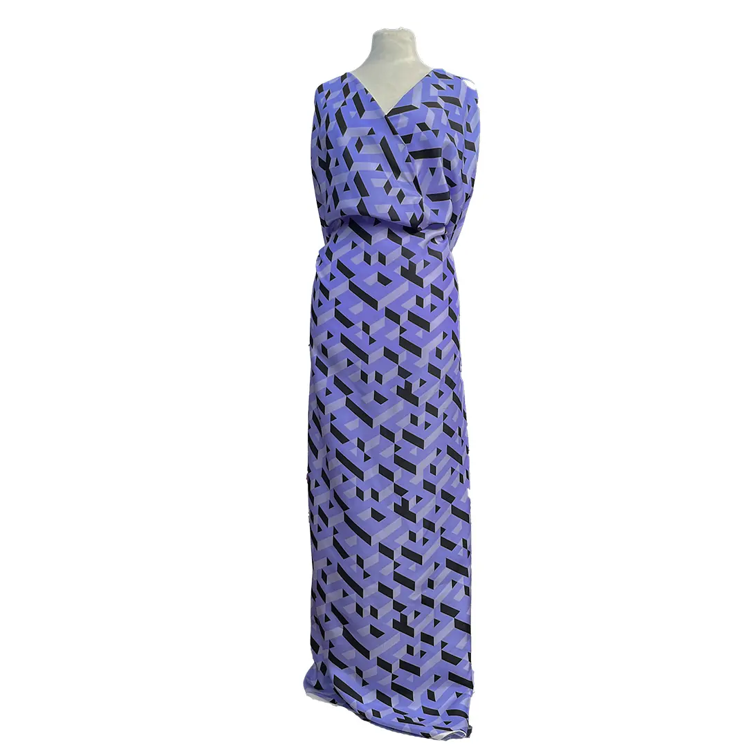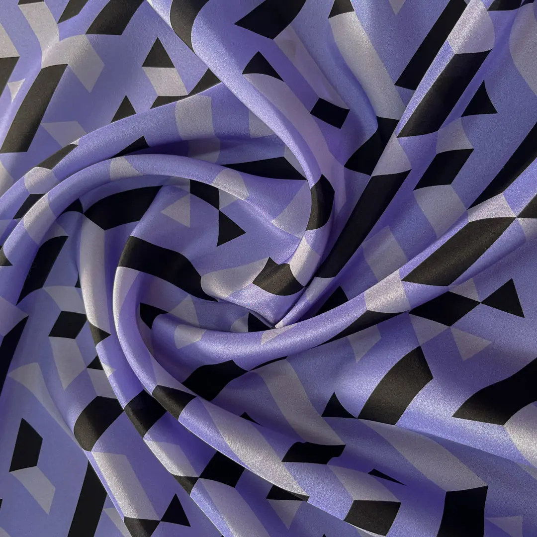Tessuto in raso di seta d’alta moda con fantasia geometrica