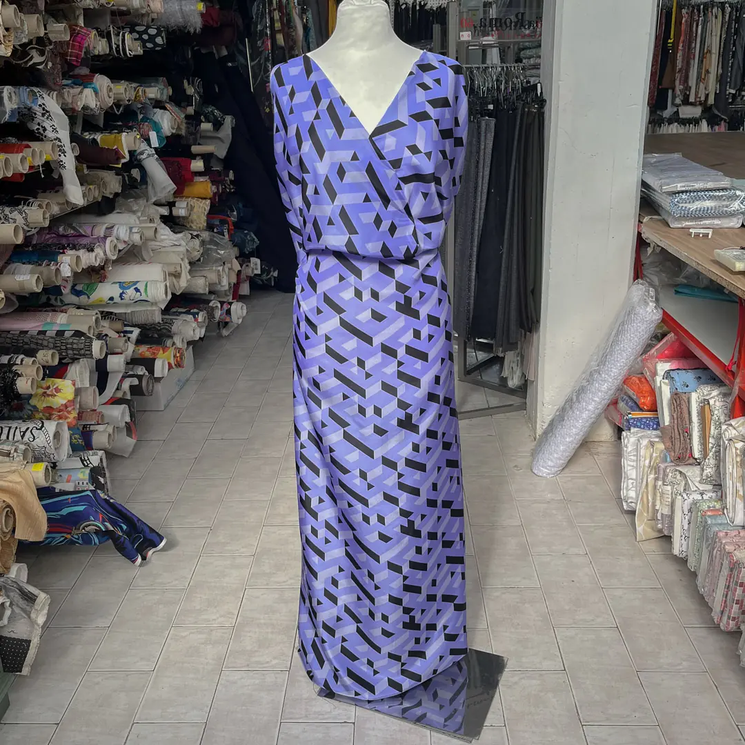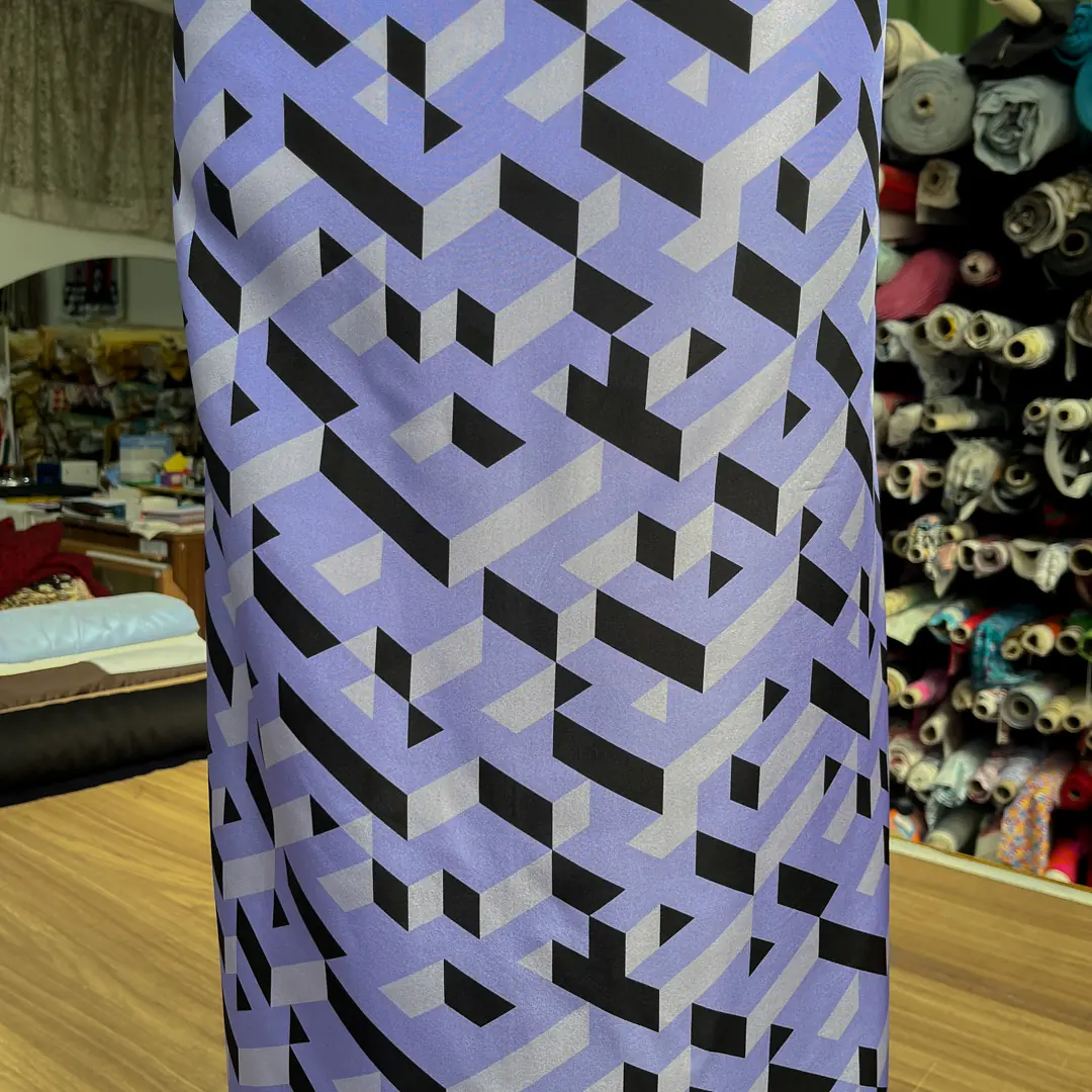 Il design stesso del tessuto gioca con geometrie eleganti, creando un effetto tridimensionale unico che rende il motivo dinamico e visivamente intrigante.