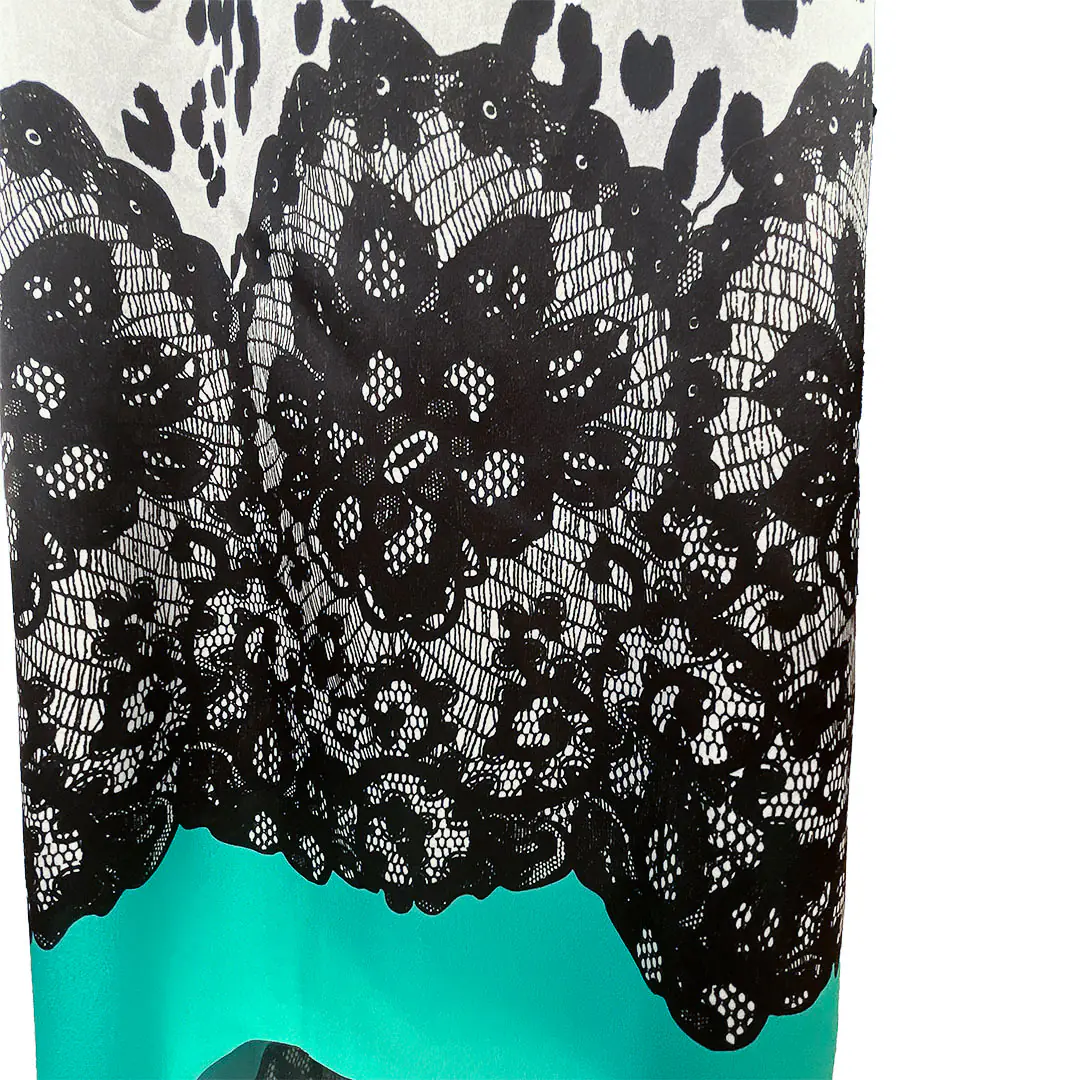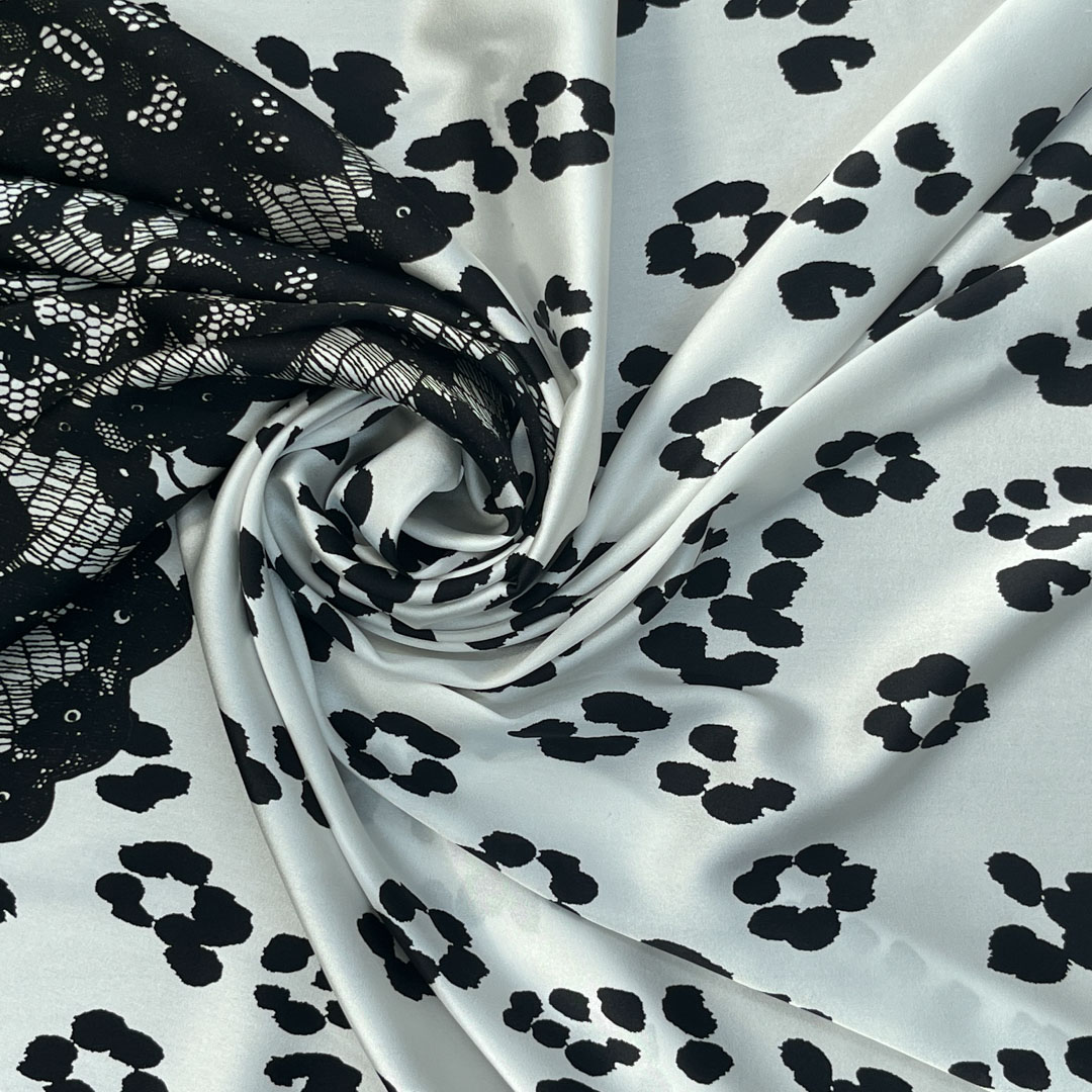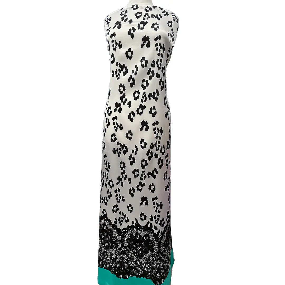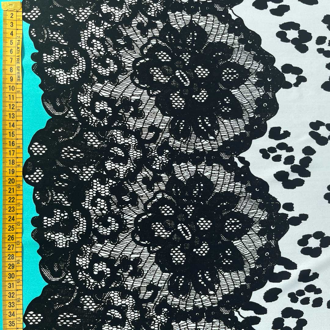 Questo tessuto è ideale per creare capi di abbigliamento eleganti e sofisticati, come abiti da sera, camicie o bluse. La combinazione della stampa floreale stilizzata con il bordo in pizzo lo rende perfetto per realizzare capi che richiedono un tocco di originalità e lusso. Può essere utilizzato anche per accessori come foulard, sciarpe o elementi decorativi per interni, come tende o cuscini.