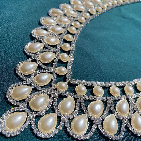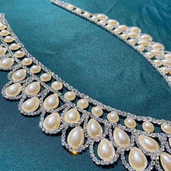 Accessorio decorativo per abiti eleganti con strass e perle