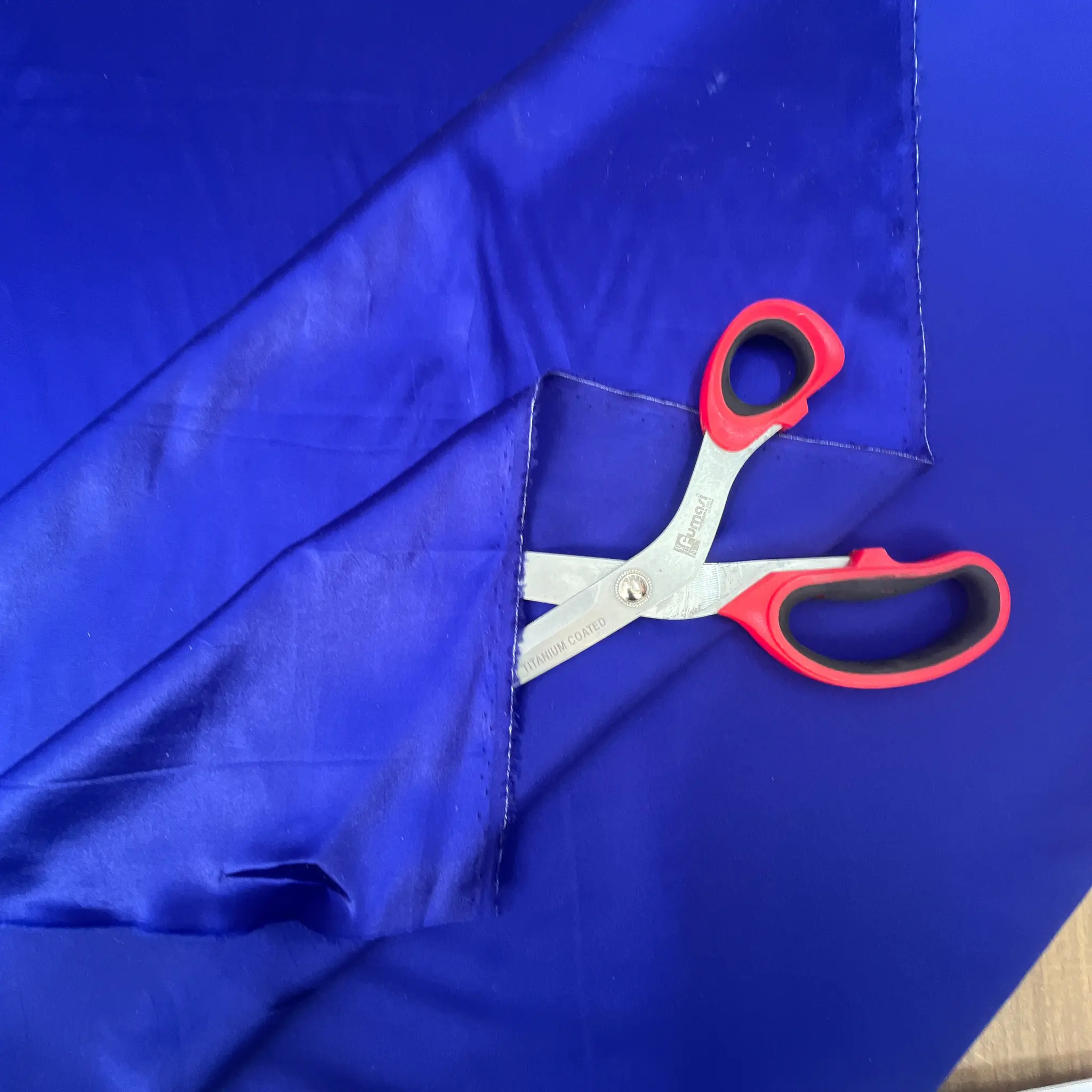 Le pezze sono entrambe a tinta unita: una in un intenso viola magenta acceso, moderno e vibrante, e l’altra in un profondo blu cobalto deciso, pieno e intenso, perfetto per creazioni dal carattere raffinato ma contemporaneo.