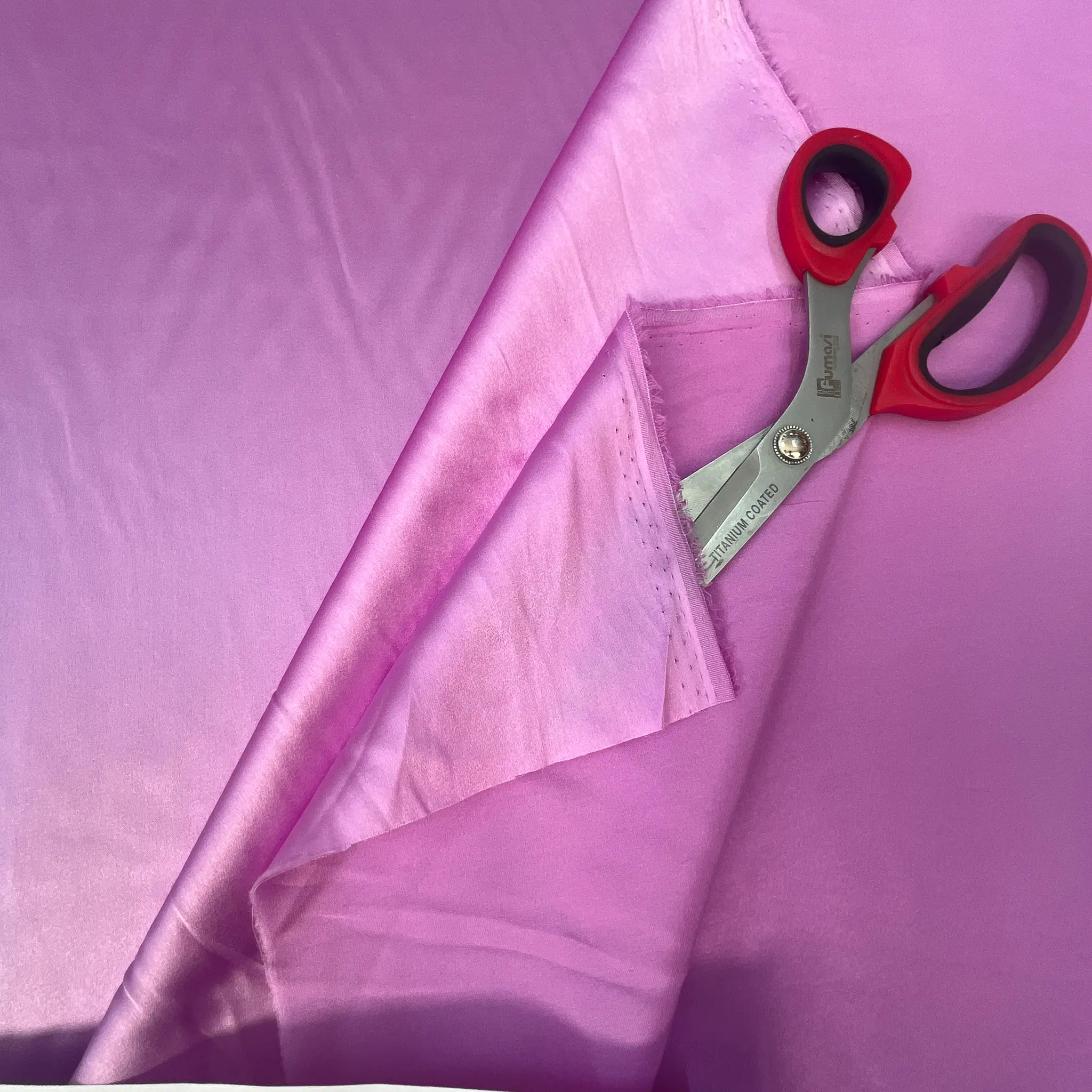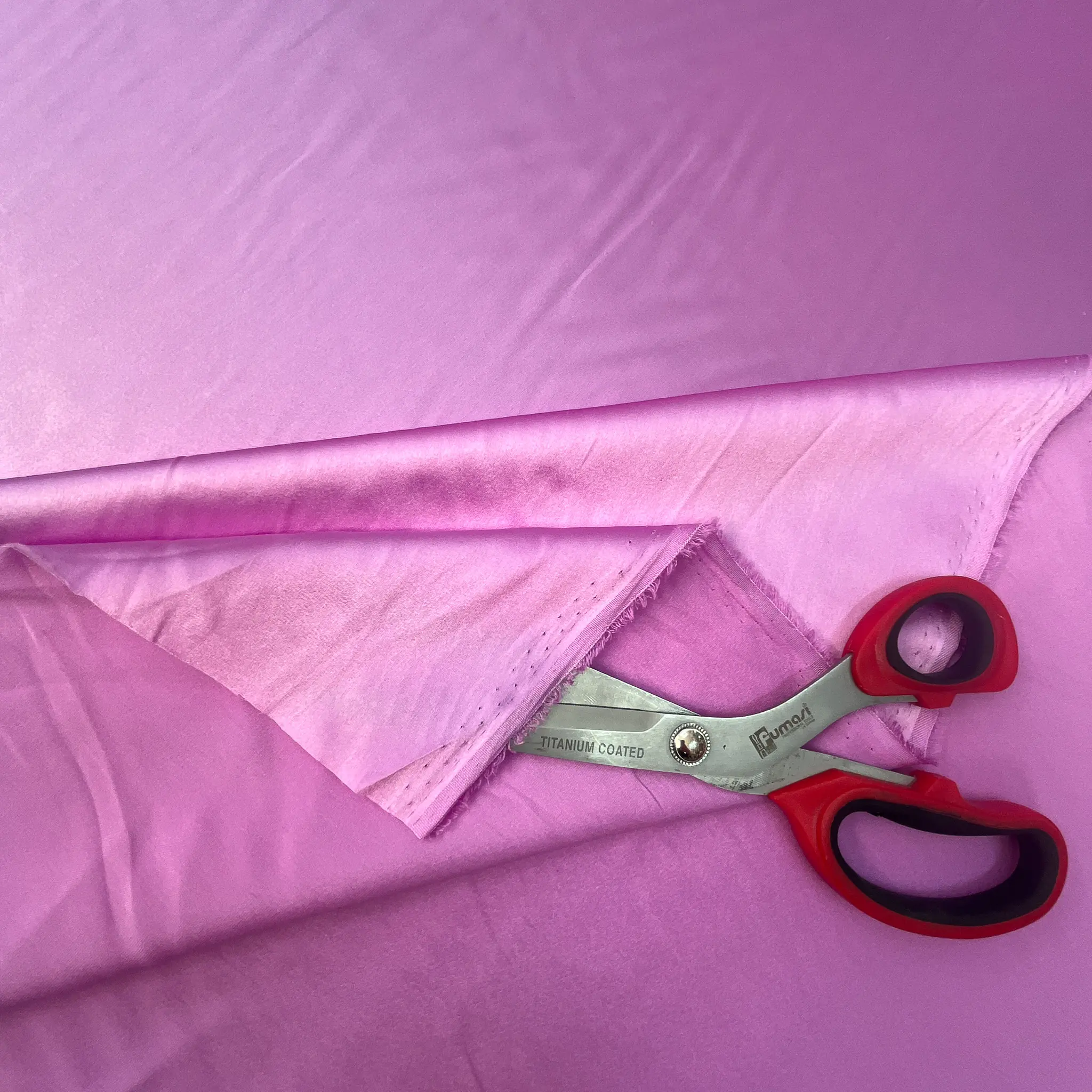 Questo tessuto è un raso di pura seta d’abbigliamento liscia e compatta, con una mano morbida e scivolata che cade in modo elegante senza risultare eccessivamente pesante.
