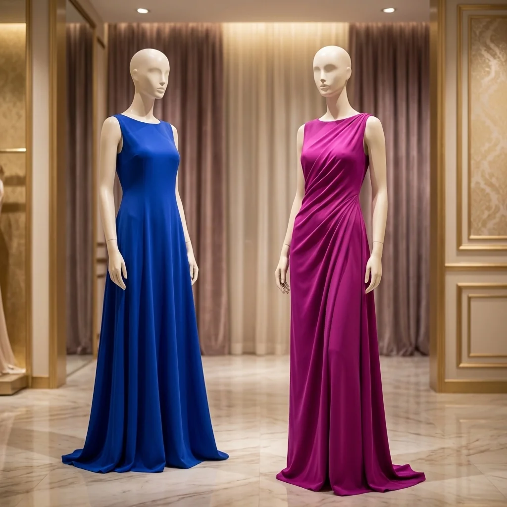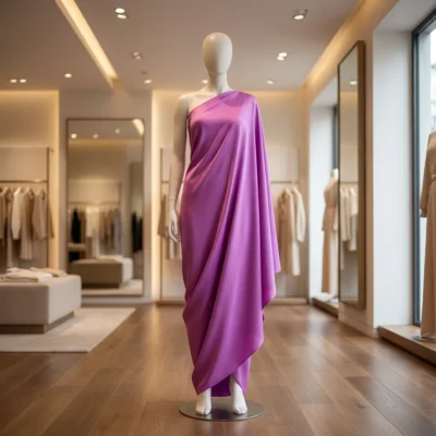 Le due varianti cromatiche – il viola magenta e il blu cobalto – si prestano sia a capi monocolore, d’impatto e sofisticati, sia ad abbinamenti tono su tono o in contrasto con tessuti opachi, per creare outfit da sera, da cerimonia o da palco che non passano inosservati.