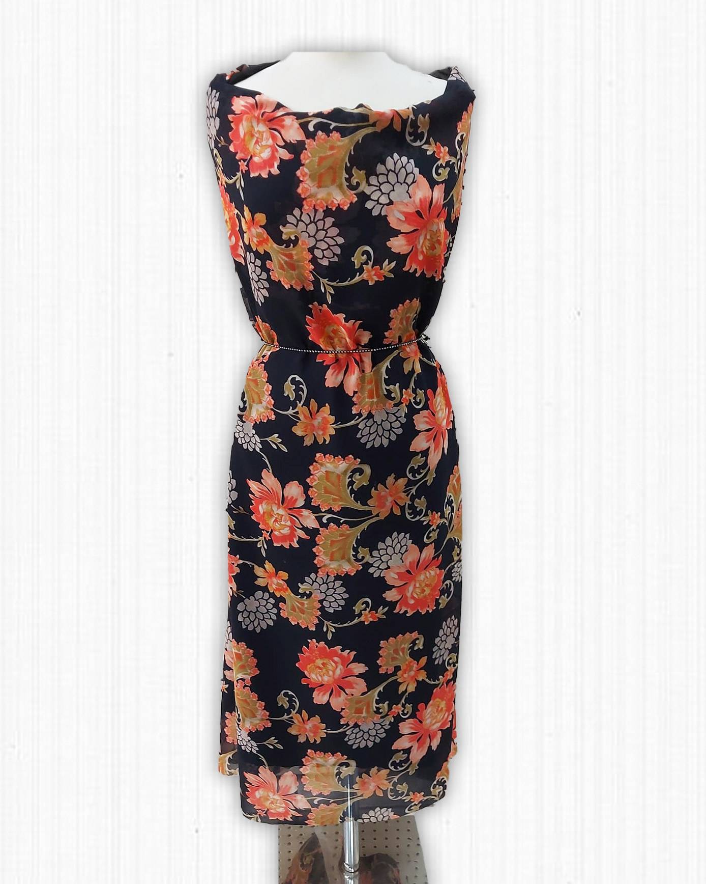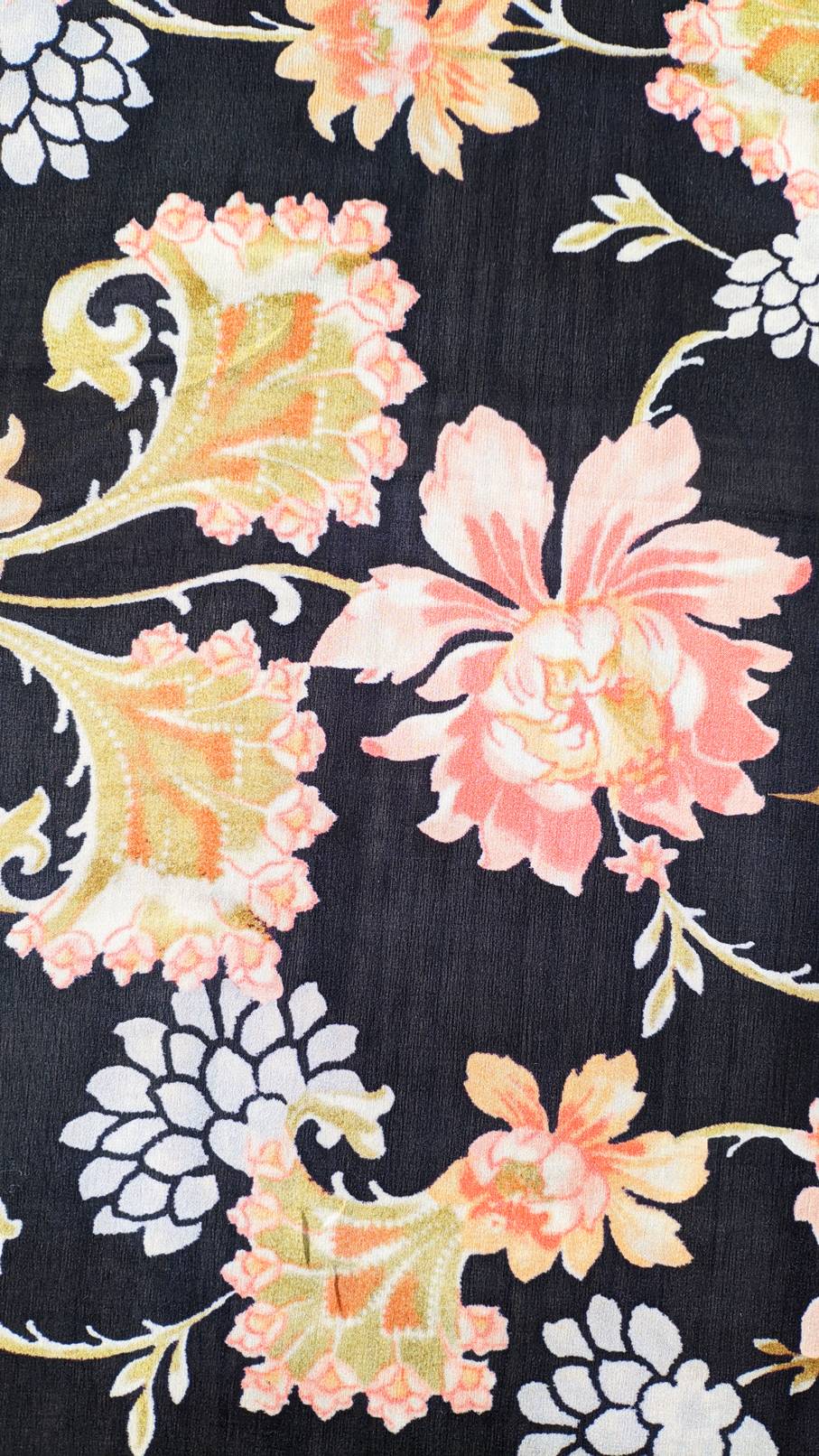 Chiffon di Seta fantasia floreale colori caldi – sfondo nero Alt.140 cm
