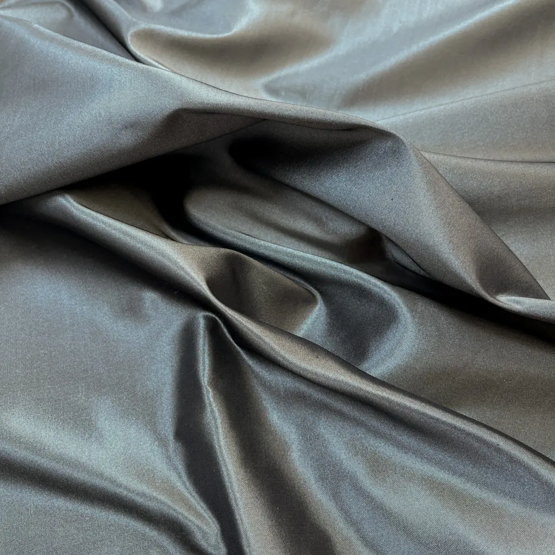 Tessuto in taffetà di pura seta italiana color grigio canna di fucile