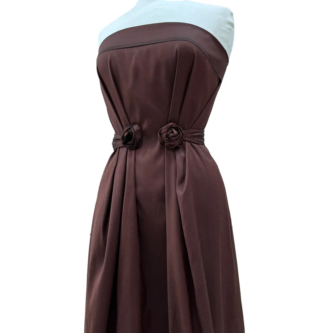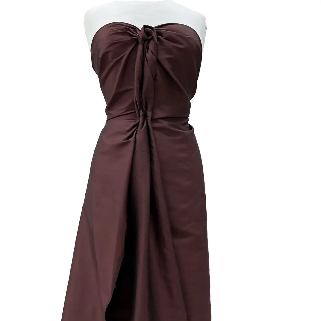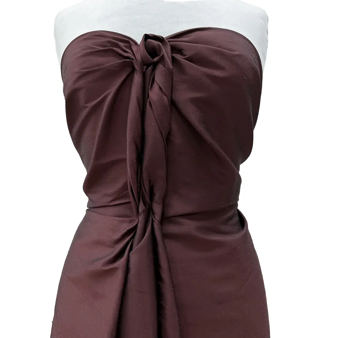 Tessuto in taffetà shantung di seta di colore marrone cioccolato