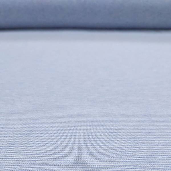 Il tessuto ha una fantasia a righe fitte di colore Fiordaliso in contrasto con il bianco naturale.