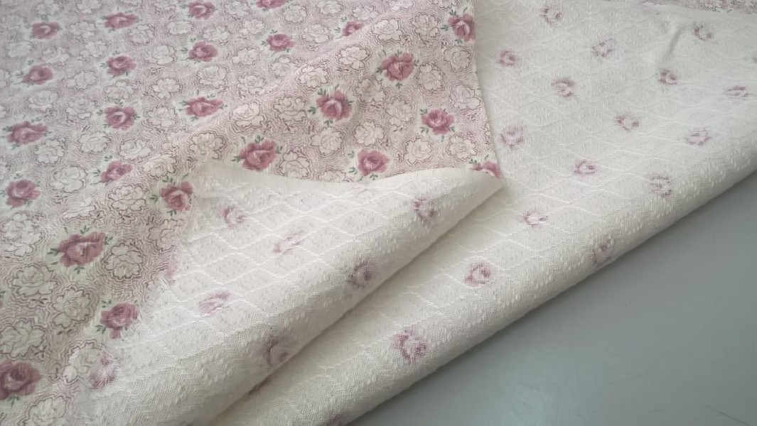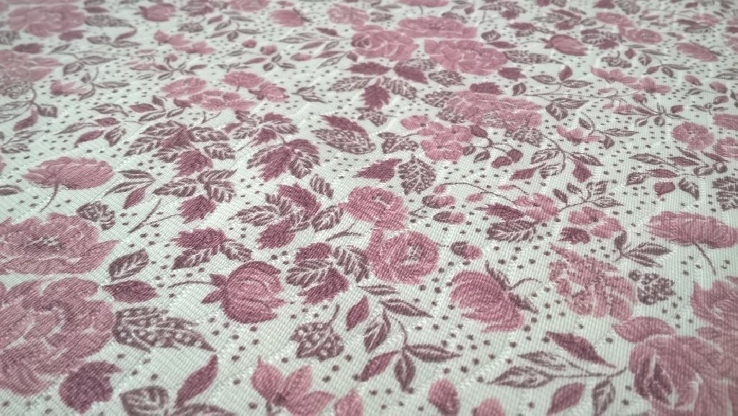 Il motivo è a fiori colorati in rosa e viola, la stoffa presenta un design vivace e decorativo. I fiori sono ricamati sulla superficie della flanella, aggiungendo un tocco di eleganza e freschezza al prodotto. La combinazione di rosa e viola crea un contrasto armonioso e attraente, perfetto per chi cerca un look elegante e allegro.