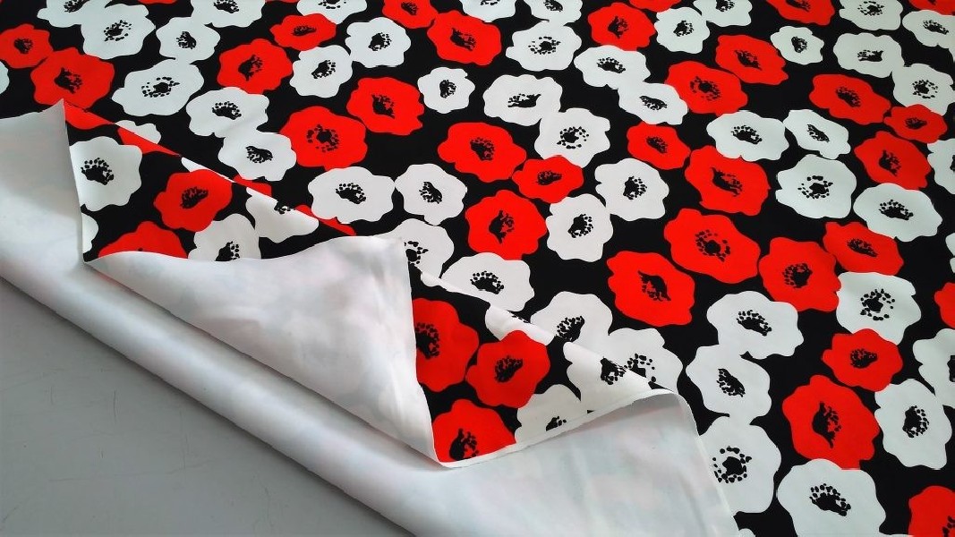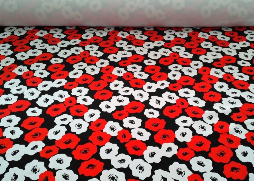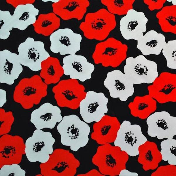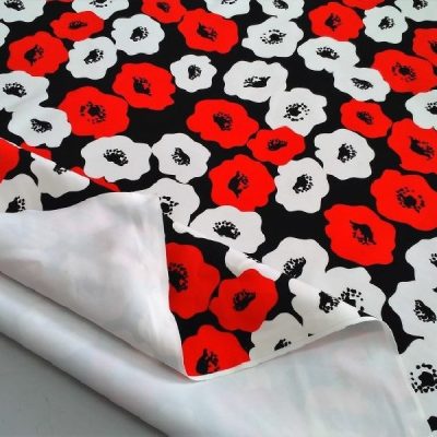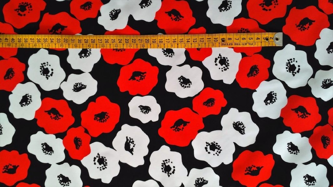 Tessuto per abiti bielastico a fantasia papaveri effeto pop art