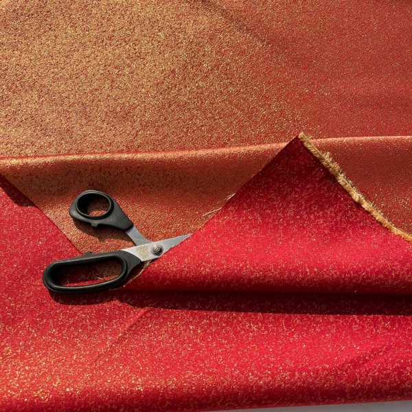 Stoffa per arredo rosso screziato da lurex color oro