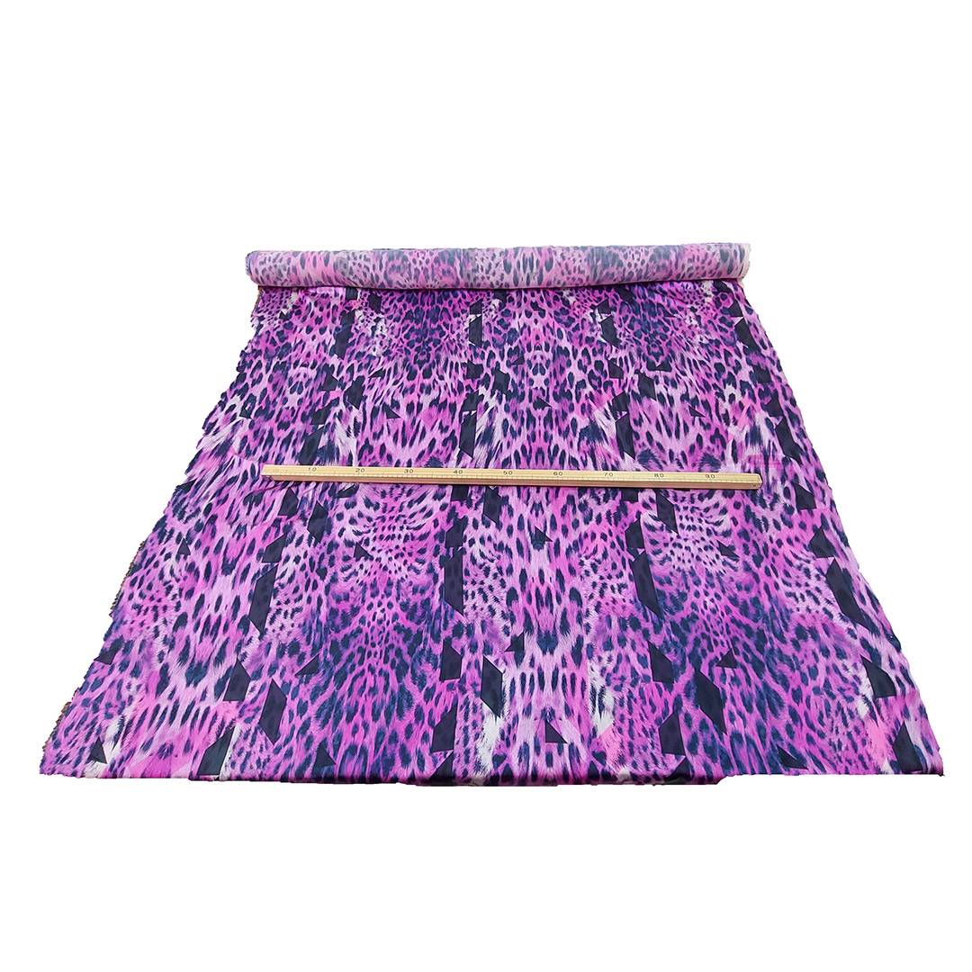 Ricco di varie sfumature di viola ed a contrasto motivi geometrici e maculati di un nero deciso, dalla sensazione morbida al tatto e dalla buona vestibilità.