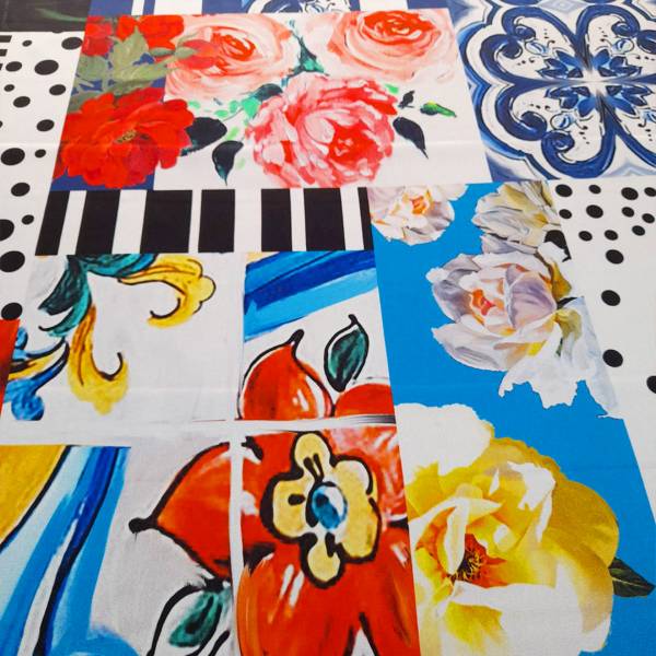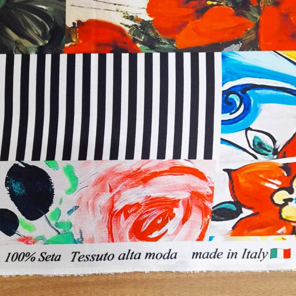 Raso di seta made in italy fantasia effetto collage
