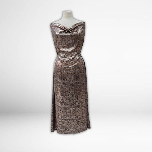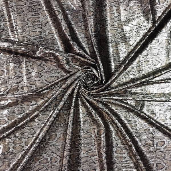 Tessuto elasticizzato in lame pitonato con pailettes.