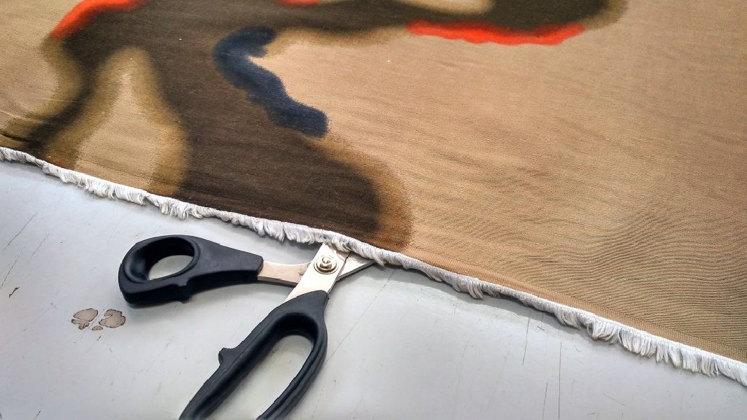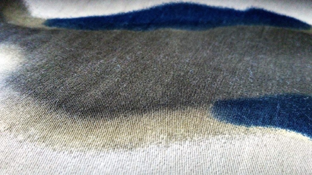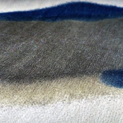 Originalissimo cotone tipo militare: su uno sfondo corda si stagliano figure che ricordano lo stile camouflage: l’arancione, il blu e il verde militare sono i protagonisti di questa fantasia che ricorda le pennellate ad acquerello.