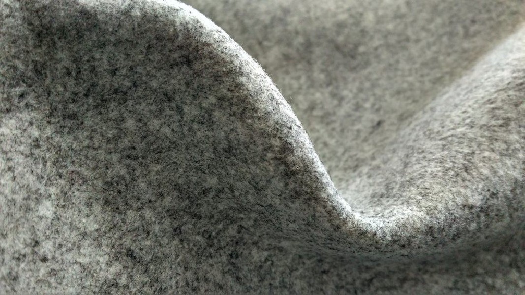 Feltro grigio mèlange. Il feltro è un tessuto non tessuto, in pelo di animale.