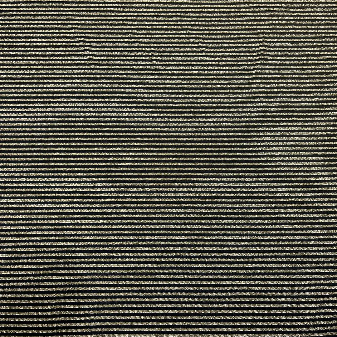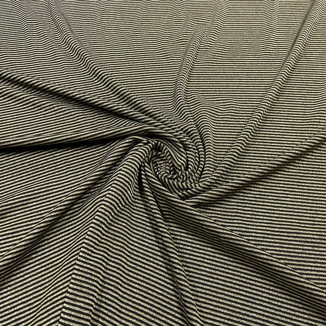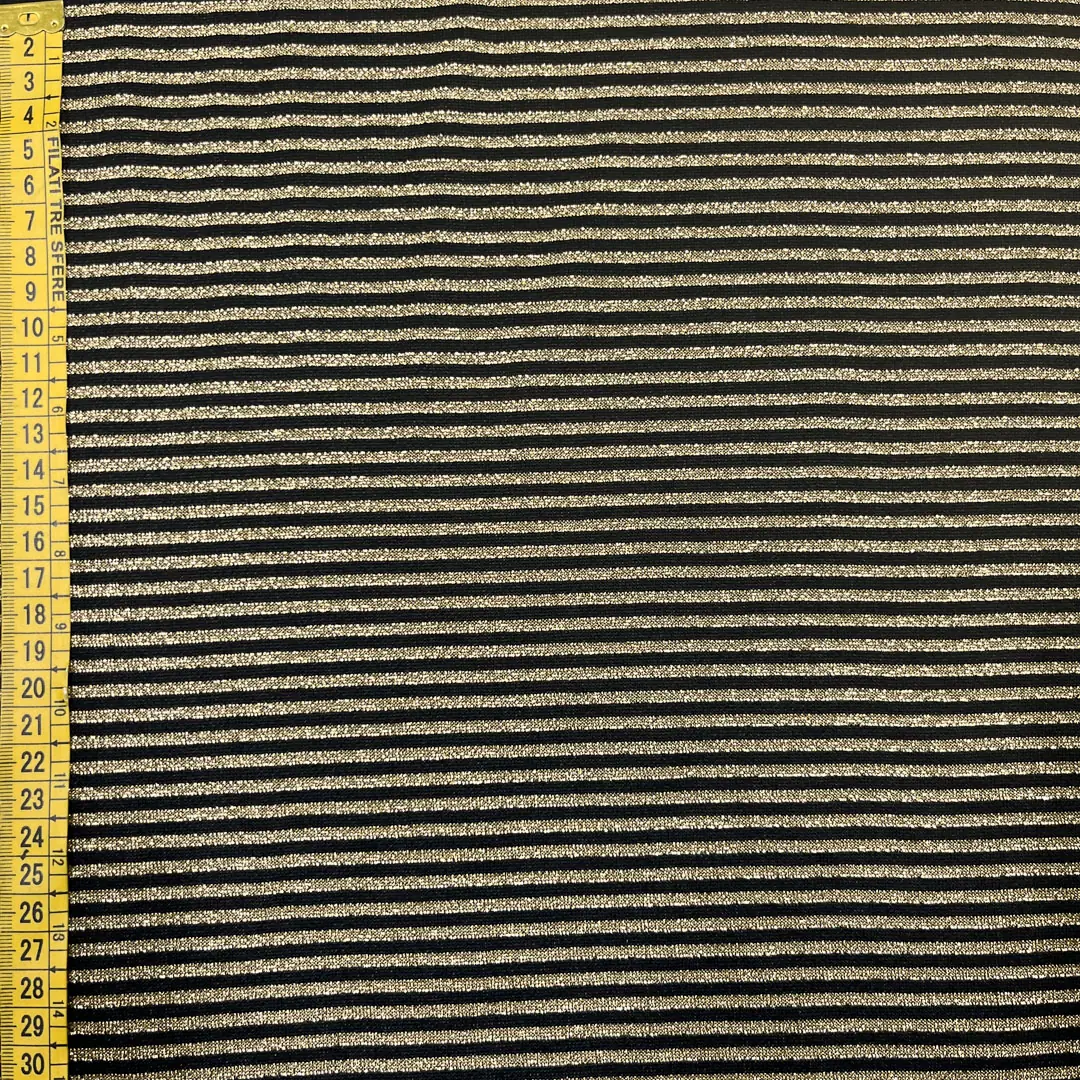 Stoffa in maglina colore nero deciso a righe dorate in lamè