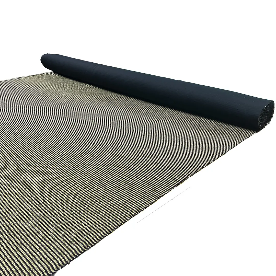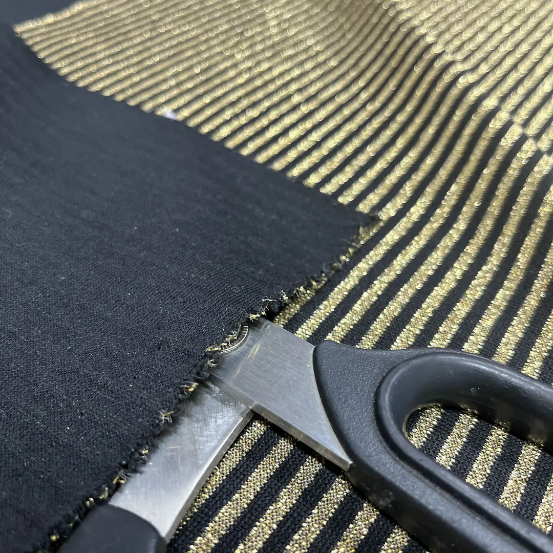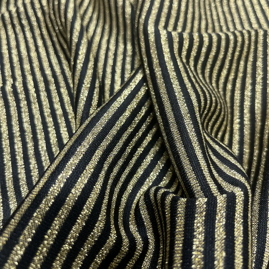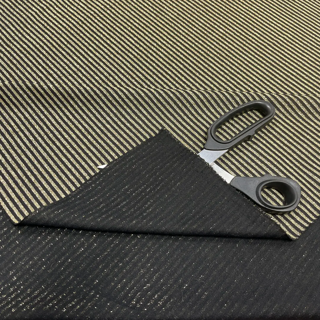 Stoffa in maglina colore nero deciso a righe dorate in lamè