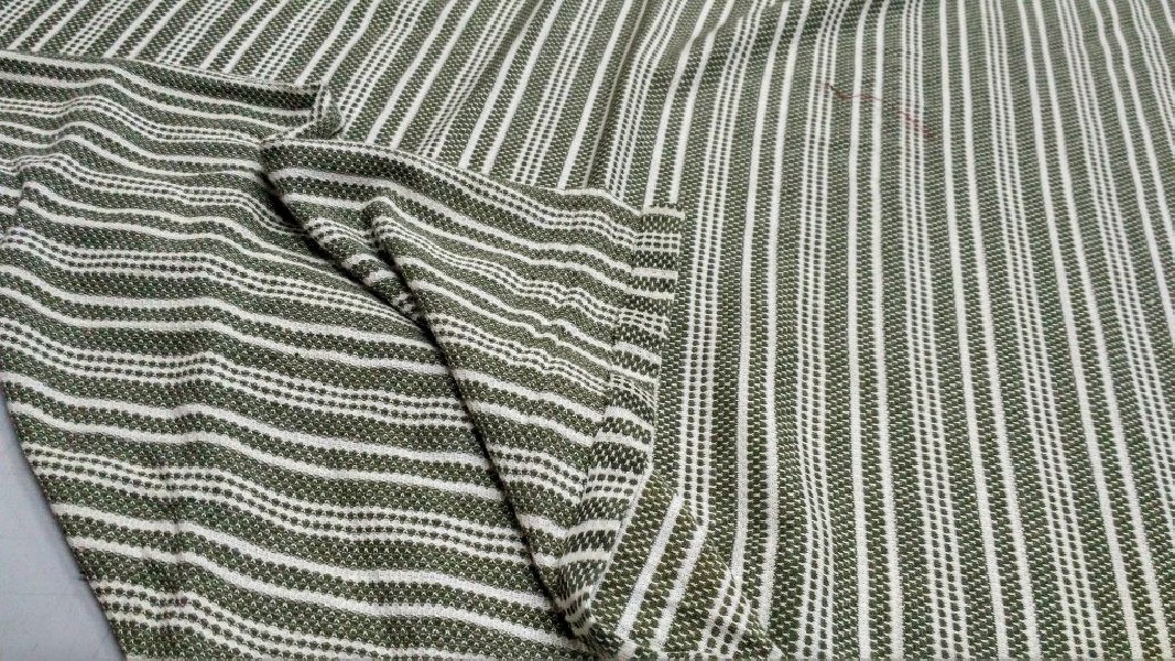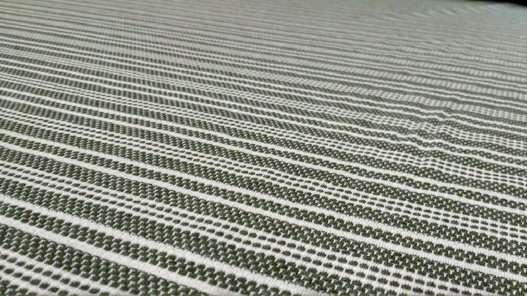 Tessuto Maglina morbidissima a costine con righe color verde oliva e bianco ottico