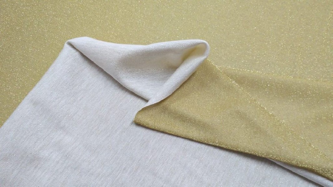 Maglina elasticizzata color oro, caratterizzata da una mano estremamente morbida e una struttura fine che ne garantisce leggerezza e trasparenza.