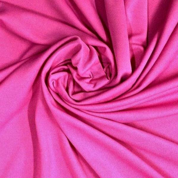 Tessuto in maglina misto cotone che, nella vivace tonalità di rosa chiaro, incarna perfettamente l’equilibrio tra comfort e leggerezza che si cerca per capi pensati per il benessere quotidiano.