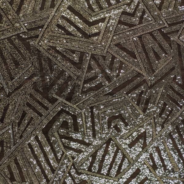 Tessuto in pizzo dorato con fantasia geometrica