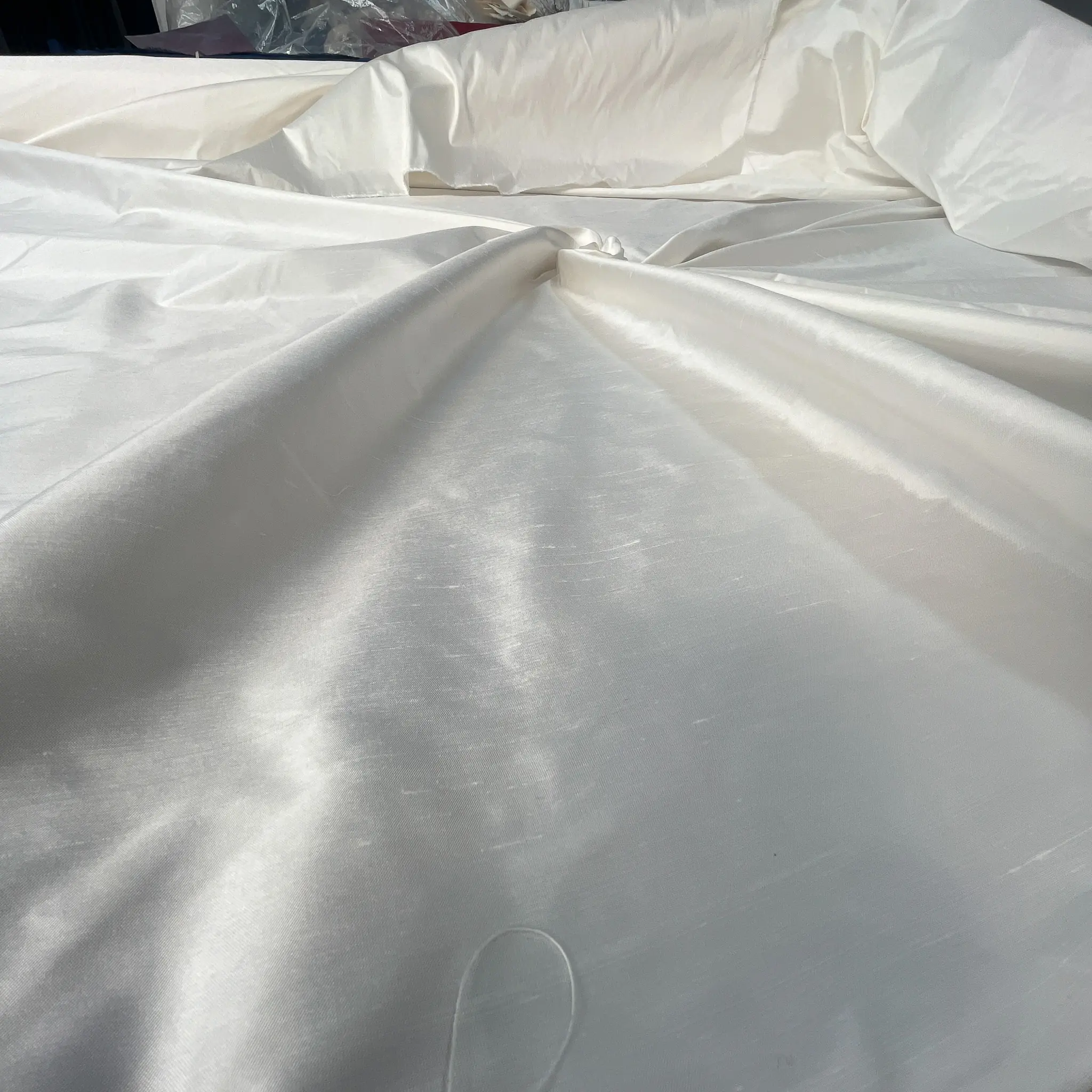 Tessuto in raso di seta pura per vestiti eleganti – tinte unite fucsia e avorio