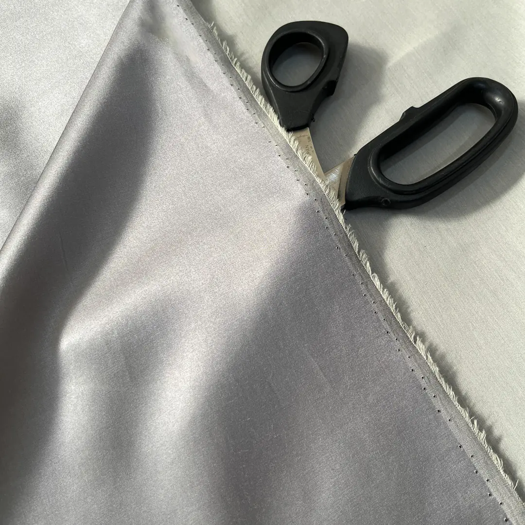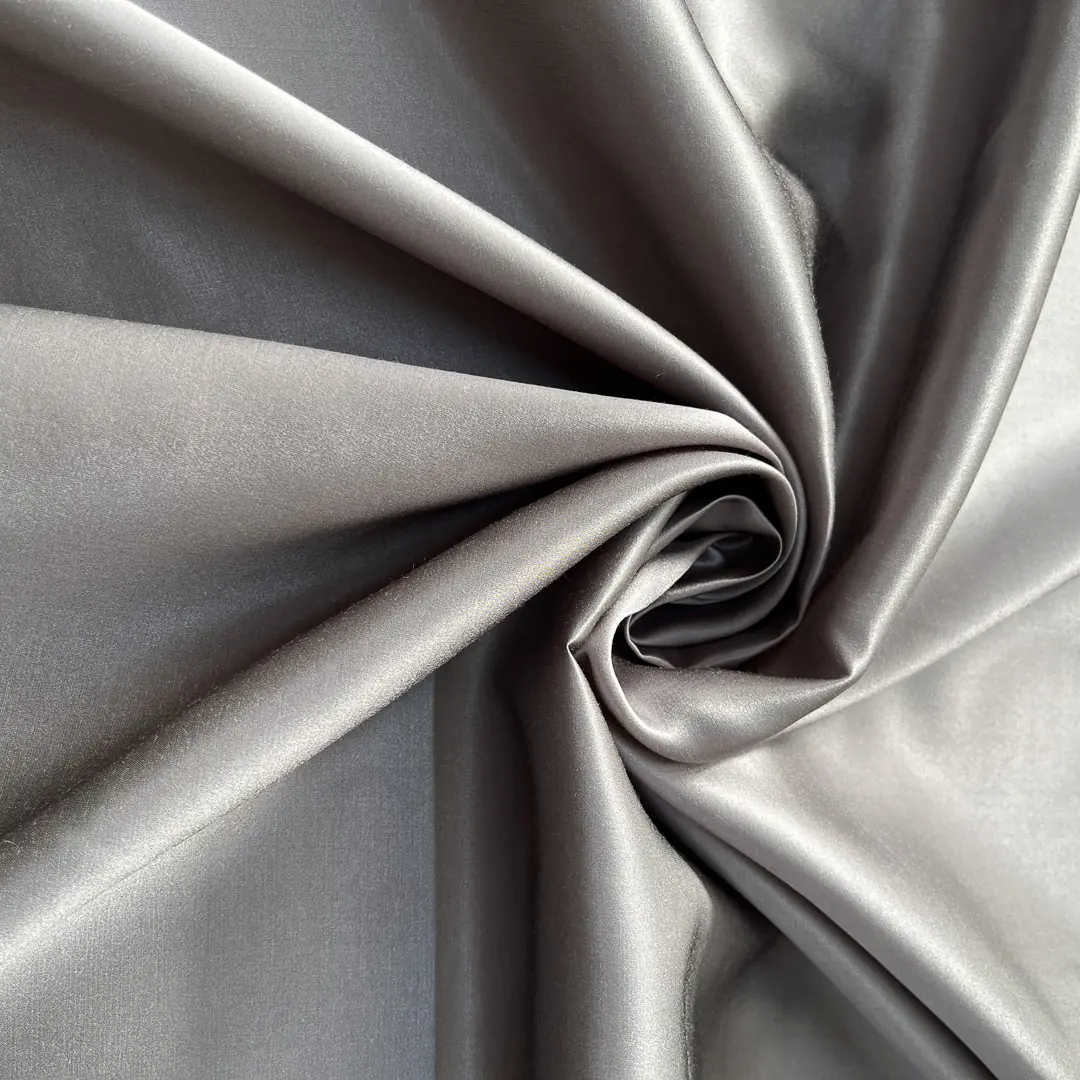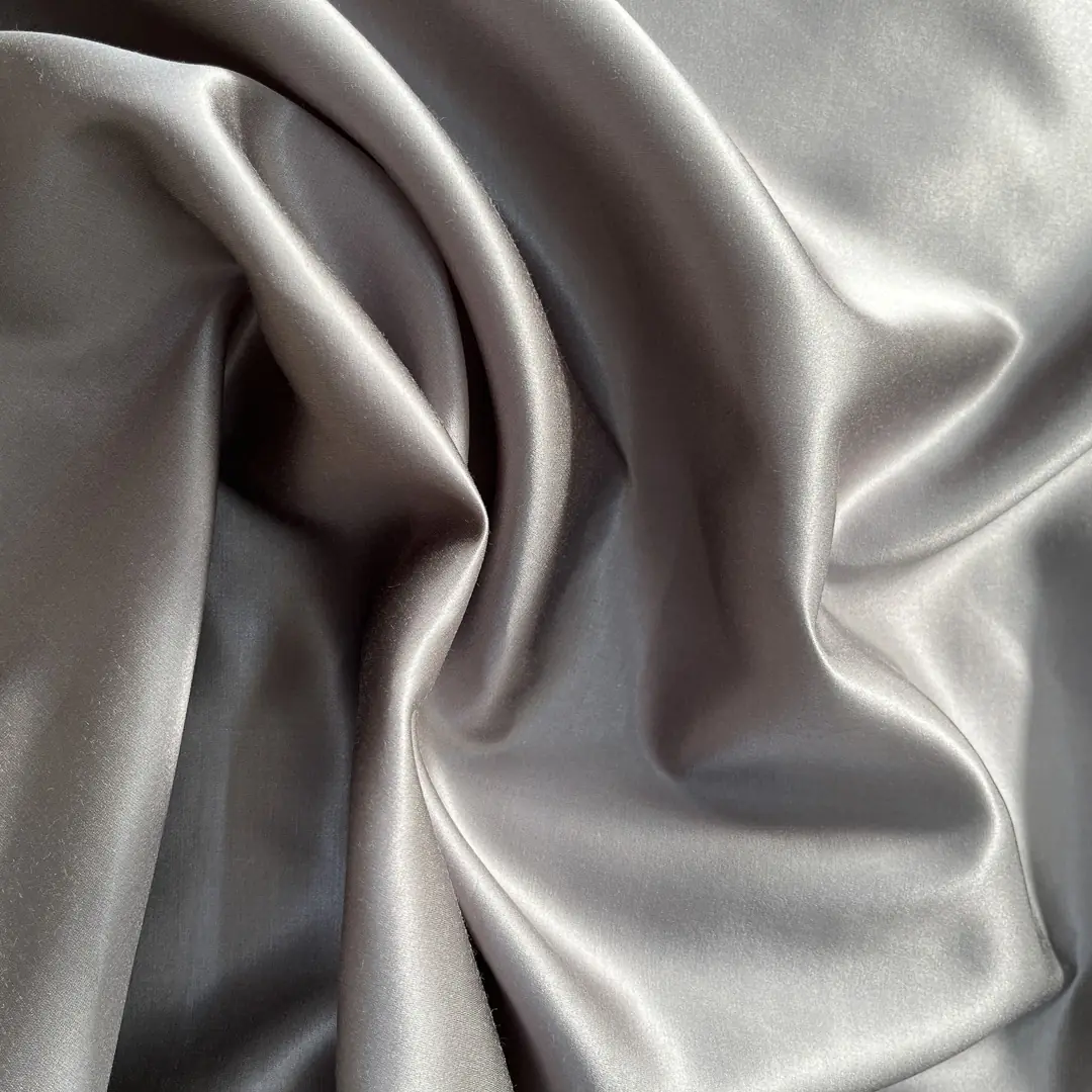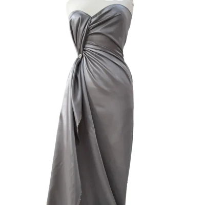 Tessuto in raso di seta grigio canna di fucile per abiti da sera e sposa