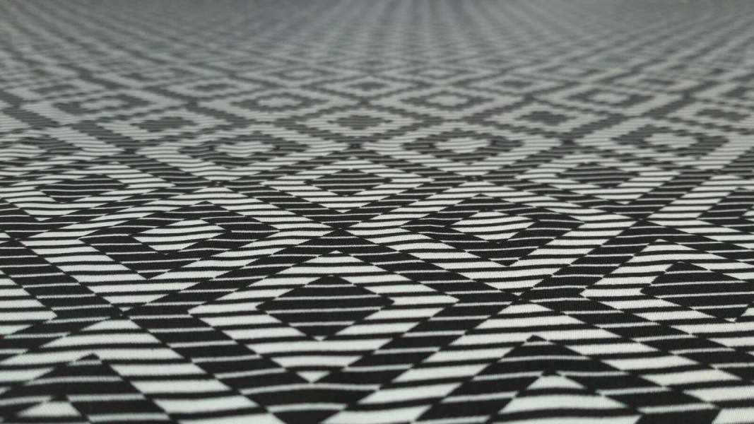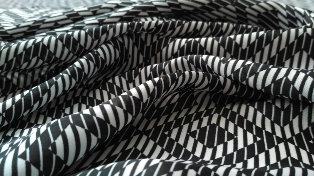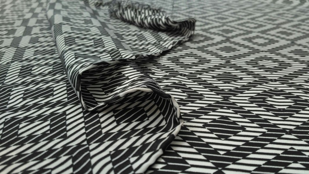 Tessuto in raso per abbigliamento a rombi e righe – bianco e nero