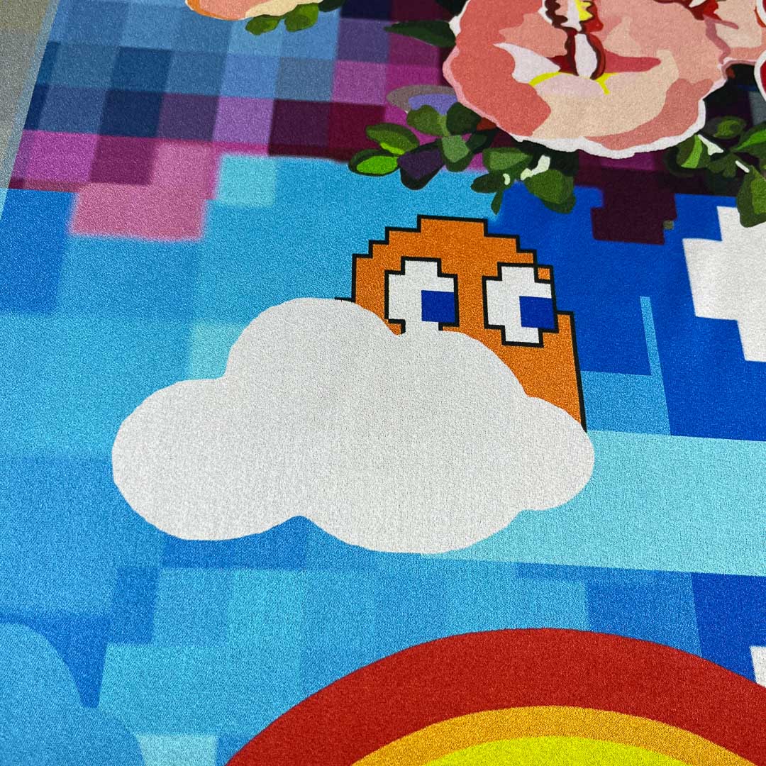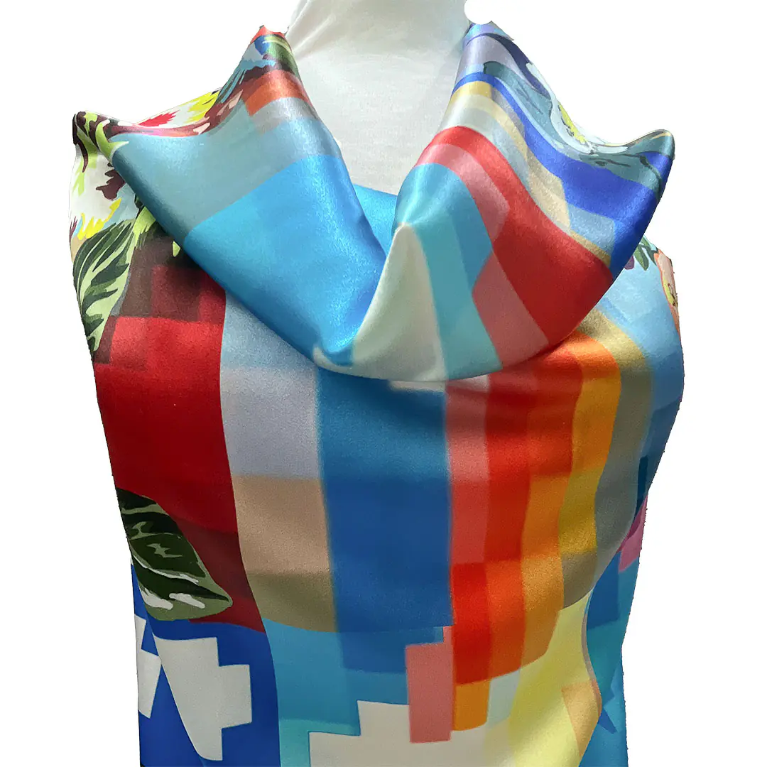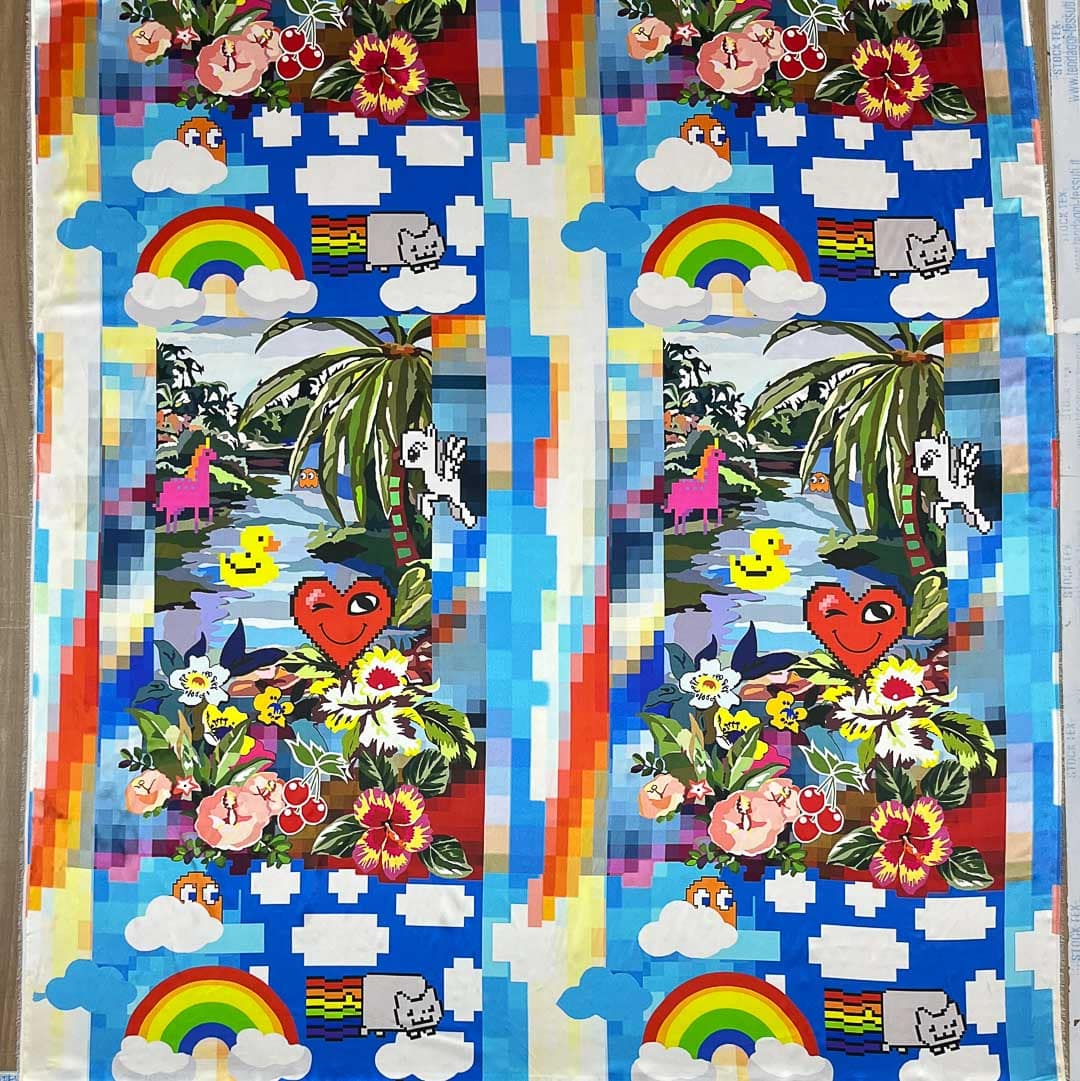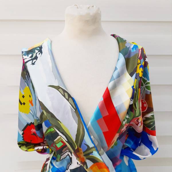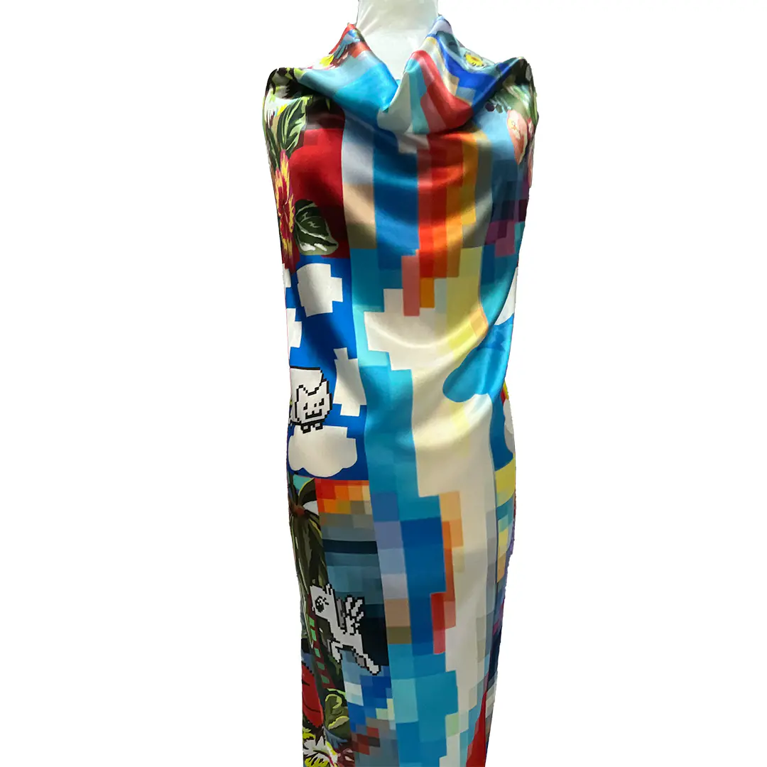 Il raso di seta elasticizzato con fantasia pop è un tessuto innovativo e divertente, che unisce l’eleganza della seta alla creatività di un design giovane e frizzante.