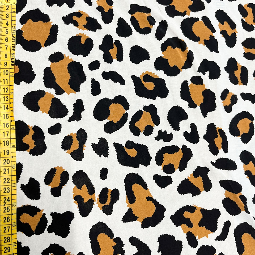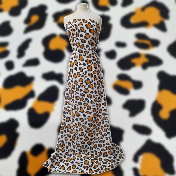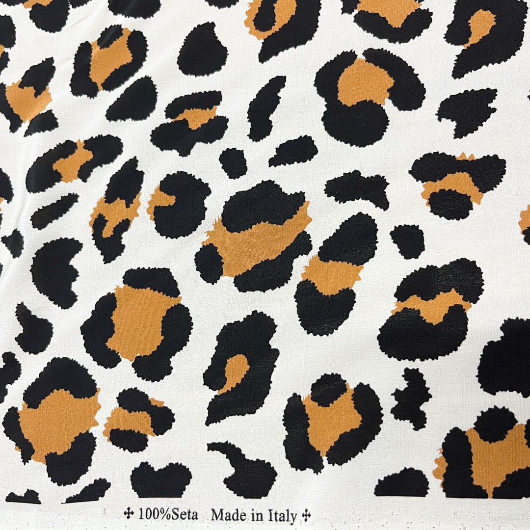 Tessuto morbido al tatto maculato, fondo panna e stampa di colore nero e giallo “ocra” in contrasto. Leggero e dalla mano morbida, questo tessuto è molto versatile e facile da usare.