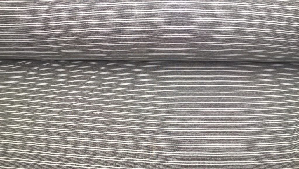 Pregiata maglina di cotone caratterizzata da un elegante motivo a righe bianche su un raffinato sfondo grigio scuro.