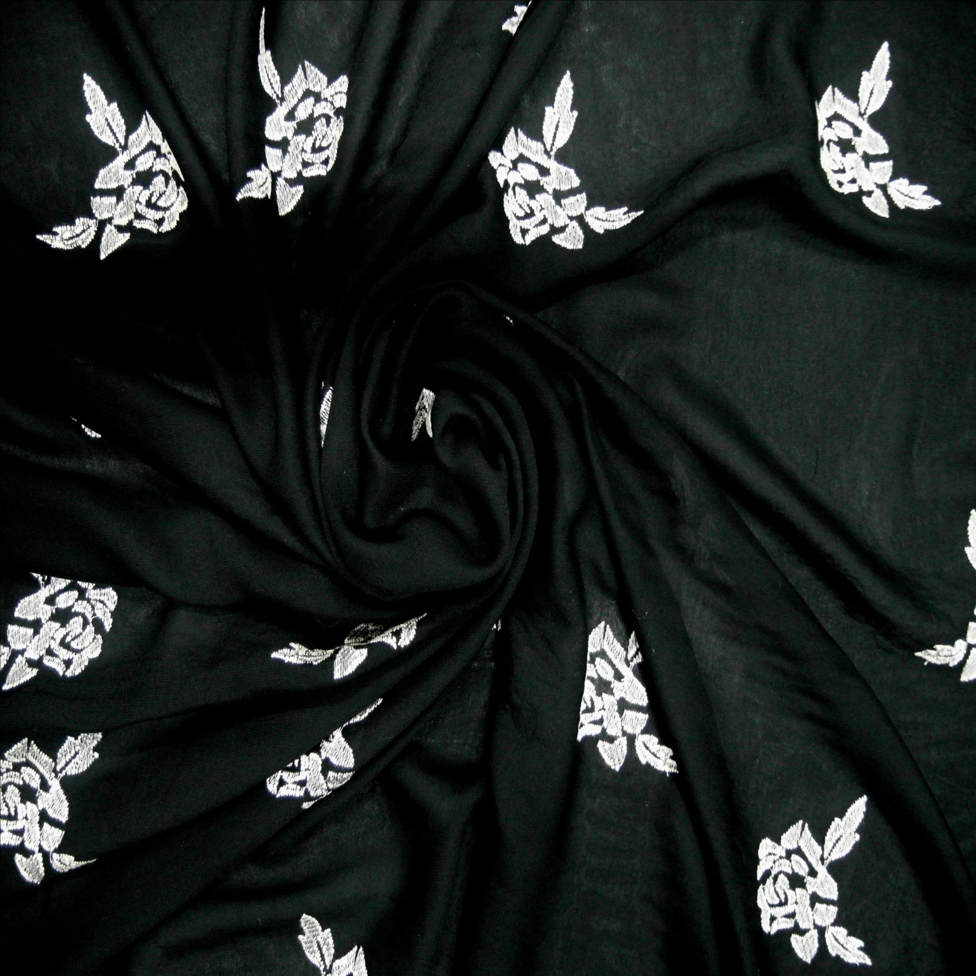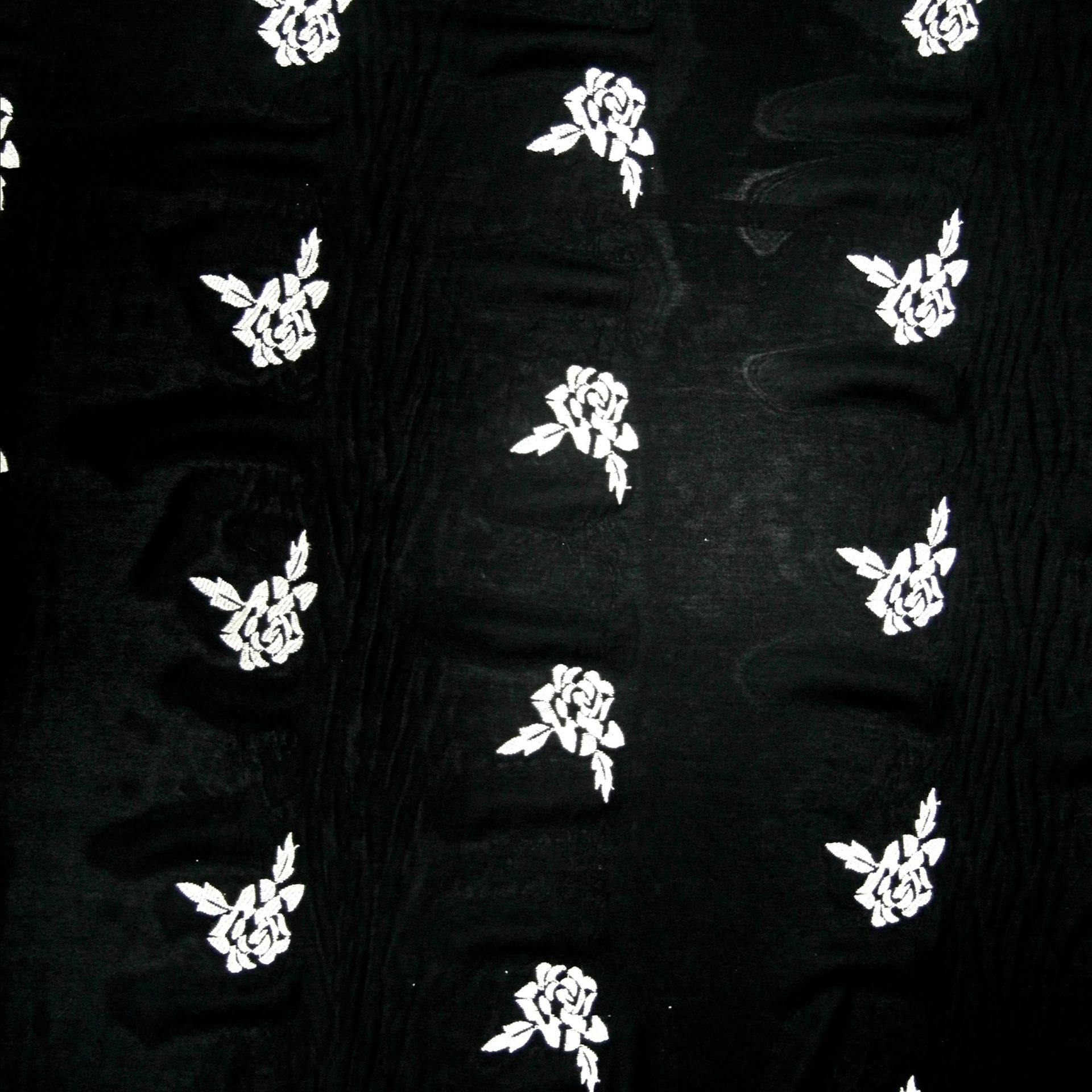Tessuto per abbigliamento con rose ricamate – bianco e nero